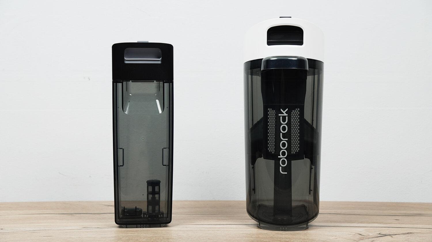 Virš valymo modulio matome ploviklio rezervuarą. Grindų plovimo ir savaiminio valymo metu jis automatiškai sumaišomas su švariu vandeniu. Gamintojo teigimu, jo talpos pakanka 20 bakų švaraus vandens arba 700 minučių veikimo. Ekonomiškas suvartojimas.