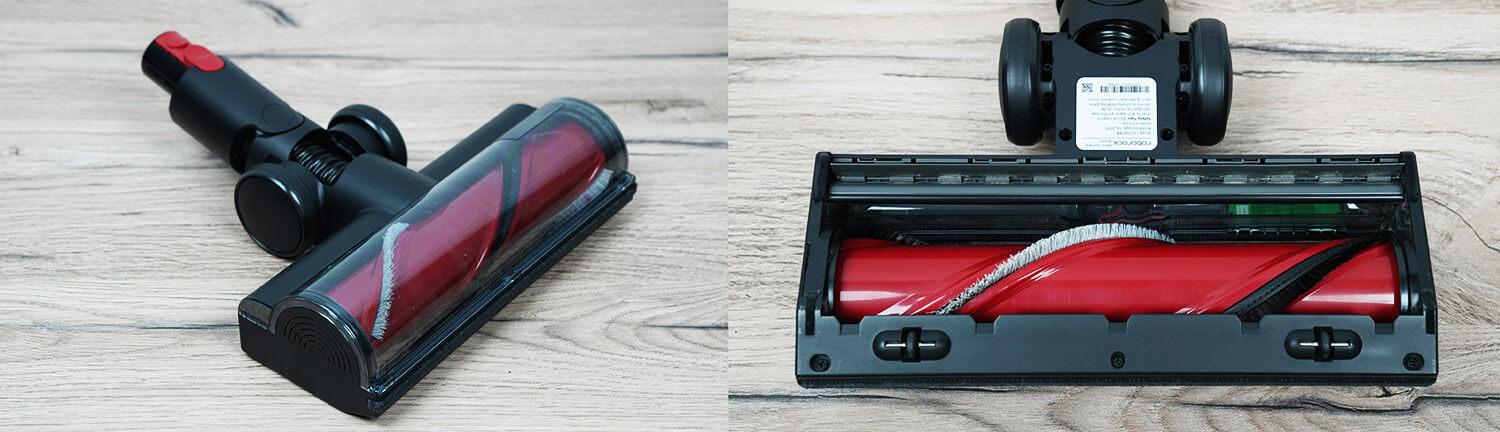 Pažvelkime į papildomus priedus, pridedamus prie rinkinio. Pagrindinis grindų antgalis turi volelį su trumpais šereliais. Šio tipo volelis pasirodė esąs veiksmingas valant kilimus, tačiau jis taip pat gerai surenka šiukšles nuo kietų grindų. Deja, volelio negalima nuimti nuo antgalio. Jį valyti nėra taip patogu, bet įmanoma.