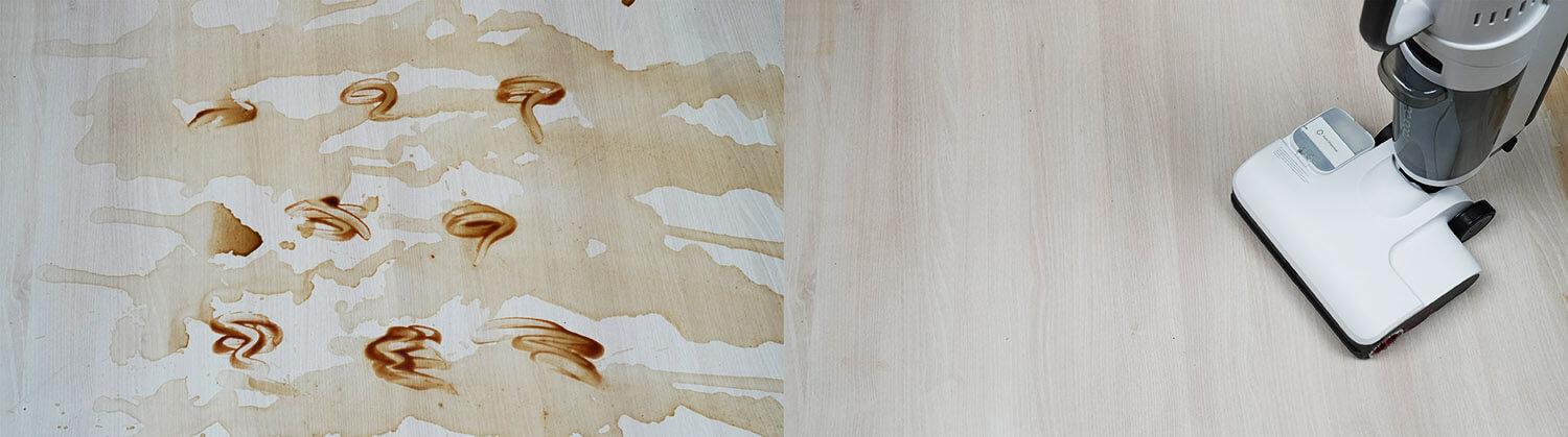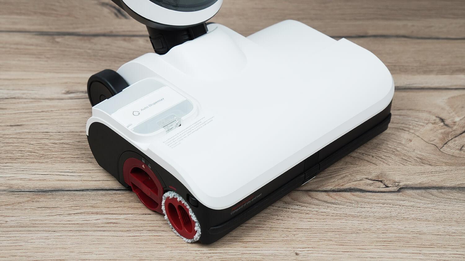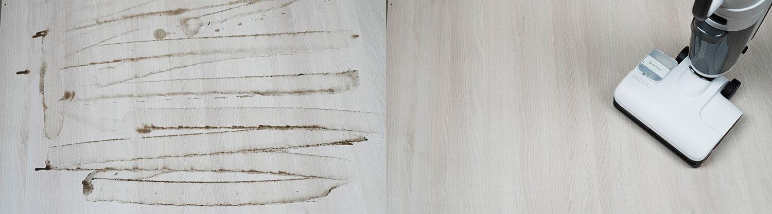 Vis dėlto sunkiai pašalina sunkiai įveikiamas dėmes. Tai užtrunka. Mano atveju, man pavyko pašalinti dėmes maždaug per 4 minutes, net nenaudojant jokio ploviklio, nes jo nebuvo pridėta. Nepaisant to, rezultatas yra vienas geriausių tarp mano išbandytų šlapio/sauso valymo dulkių siurblių.