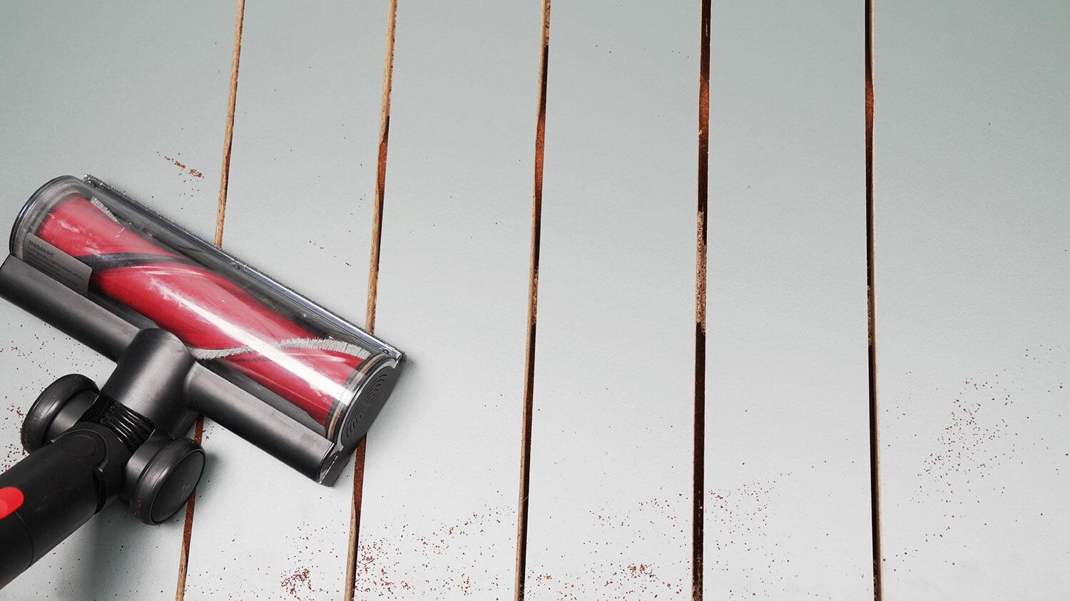 Dulkių siurblys puikiai pašalina nešvarumus, nepalikdamas dryžių ar žymių. Be to, kaip minėta anksčiau, „Roborock Dyad Pro Combo“ gali išvalyti net grindjuostes, nepalikdamas jokių aklųjų zonų, nes jo voleliai tęsiasi iki įrenginio krašto.
