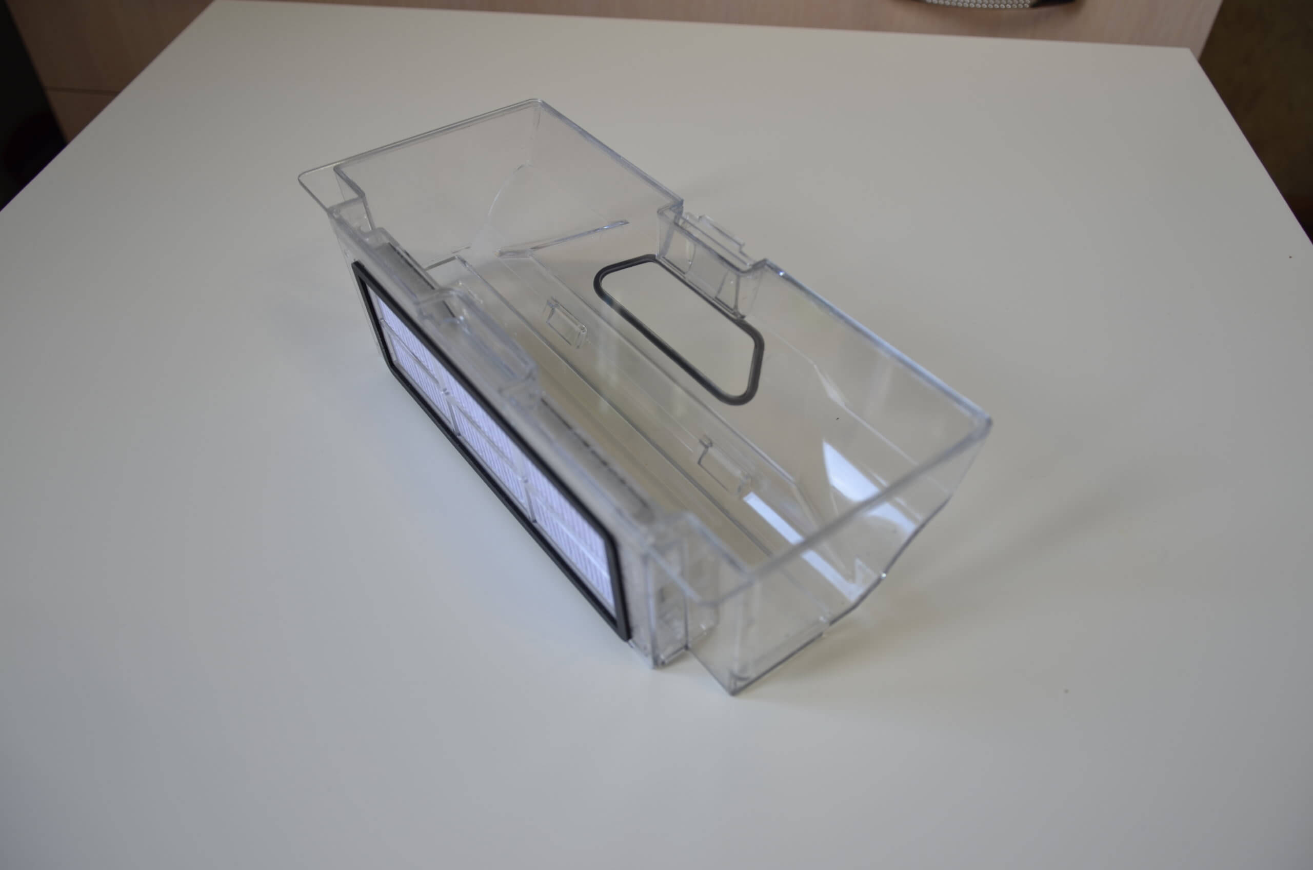 Dulkių surinkimo konteineris yra po viršutiniu dangčiu. Jis gana erdvus, talpina 640 ml.