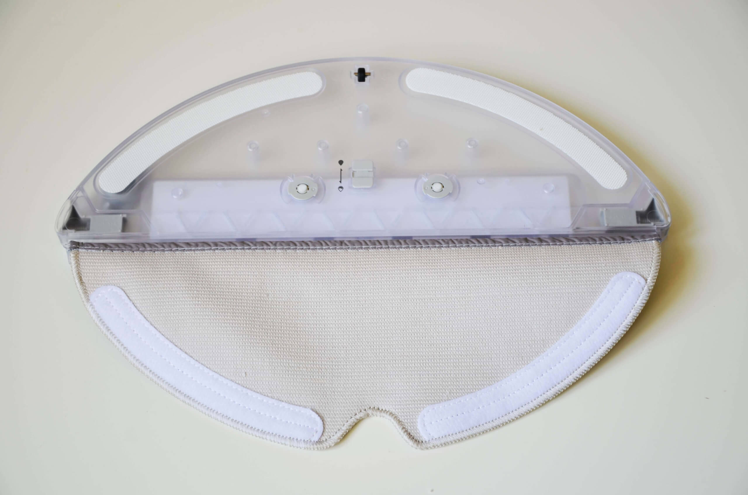Pažvelkime atidžiau į patį šlapio valymo priedą. Jame yra mechaninis vandens srauto reguliavimas, kaip įdiegta Roborock S6 Ir S6 PureAntgalis talpina iki 180 ml vandens. Vanduo pilamas per specialią angą su sandariu vožtuvu.
