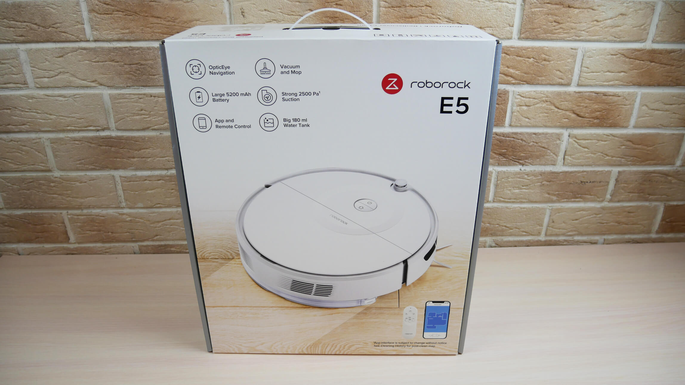 „Roborock E5“ yra firminėje dėžutėje, tokioje kaip ši: