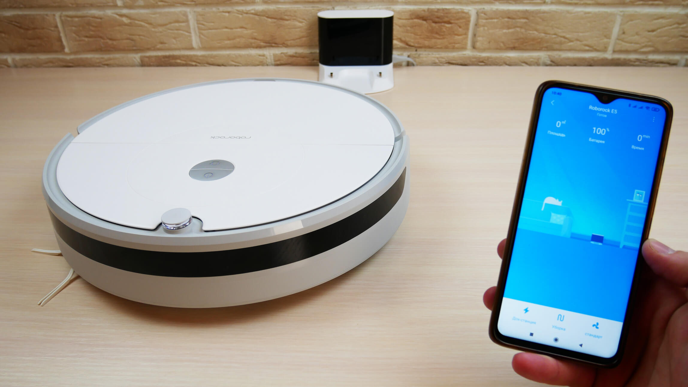 Rusiška „Roborock E5“ versija palaiko tris balso paketus: anglų, rusų ir ukrainiečių. Nuotolinio valdymo režimu galite ne tik rankiniu būdu valdyti robotą, bet ir įjungti taškinio arba automatinio valymo režimus arba grąžinti robotą dulkių siurblį į įkrovimo stotelę.
