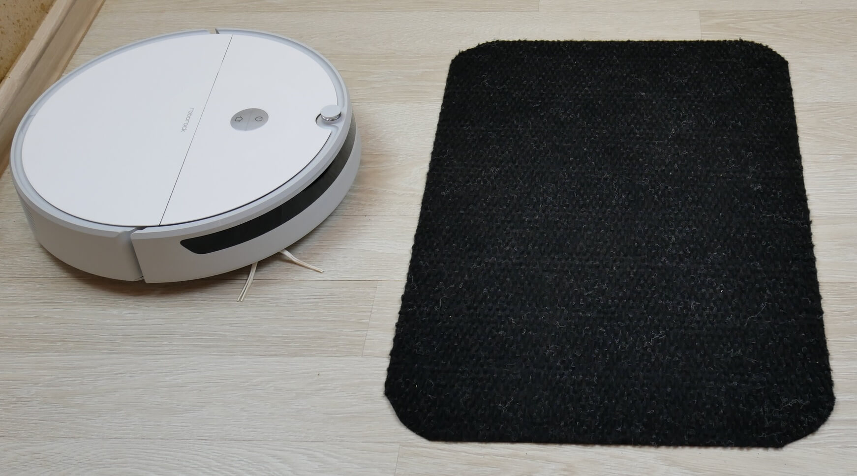 Tačiau „Roborock E5“ atsargiai reaguoja į tamsius paviršius, atpažįsta juos kaip aukščio pokyčius. Jam netgi pavyko įveikti juodą kilimą ir suklysti – tiesiog nuostabu!
