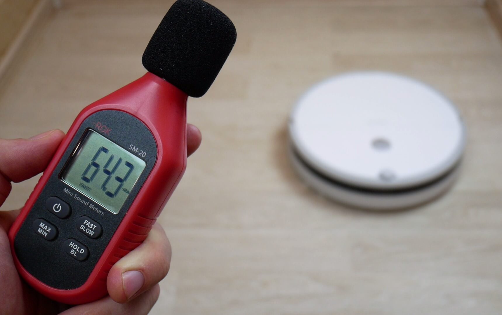 Galiausiai išmatavome roboto triukšmo lygį skirtingais režimais. Švelniu režimu jis svyravo nuo 56 iki 58 dB, esant minimaliai galiai triukšmo lygis pakilo iki 62 dB, vidutiniu režimu jis pasiekė 65 dB, turbo režimu – 68 dB, o esant maksimaliai galiai, pikas buvo 72,6 dB. Taip, „Roborock E5“ triukšmo lygis yra didesnis nei vidutinis, tačiau tai lemia padidinta jo galia, todėl nusiskundimų nėra.