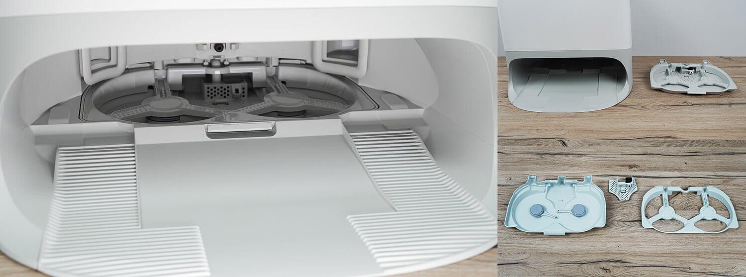 Net ir su naujais grandikliais dėkle, stotelę vis tiek reikės periodiškai plauti rankomis. Ir štai kur kabliukas. Taip, dėklą galima išimti, bet net ir su grandikliais retkarčiais reikės plauti rankomis, nes plaukai ir stambios šiukšlės užkemša filtrą. Tačiau visa tai lengva valyti. Tačiau kanalizacija yra neišimama ir taip pat užsiteršia. Ją valyti mažiau patogu, ir keista, kad ji nebuvo išimama, kaip visi ankstesni šios linijos modeliai.