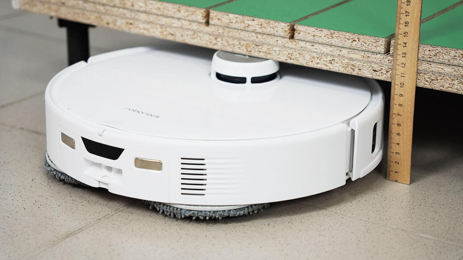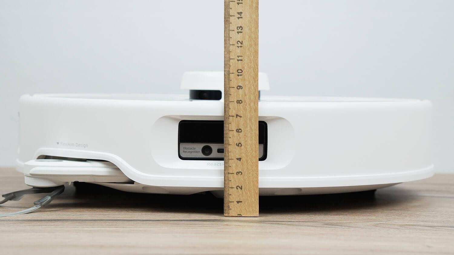 Taip pat buvo išbandytas minimalus „Roborock Qrevo Curv“ prošvaisos aukštis. Kadangi jo aukštis yra 103 mm, bandymas su standartiniu 10 cm prošvaisa buvo beprasmis. Tačiau jis galėjo pravažiuoti su 105 mm prošvaisa, o tai yra gerai.