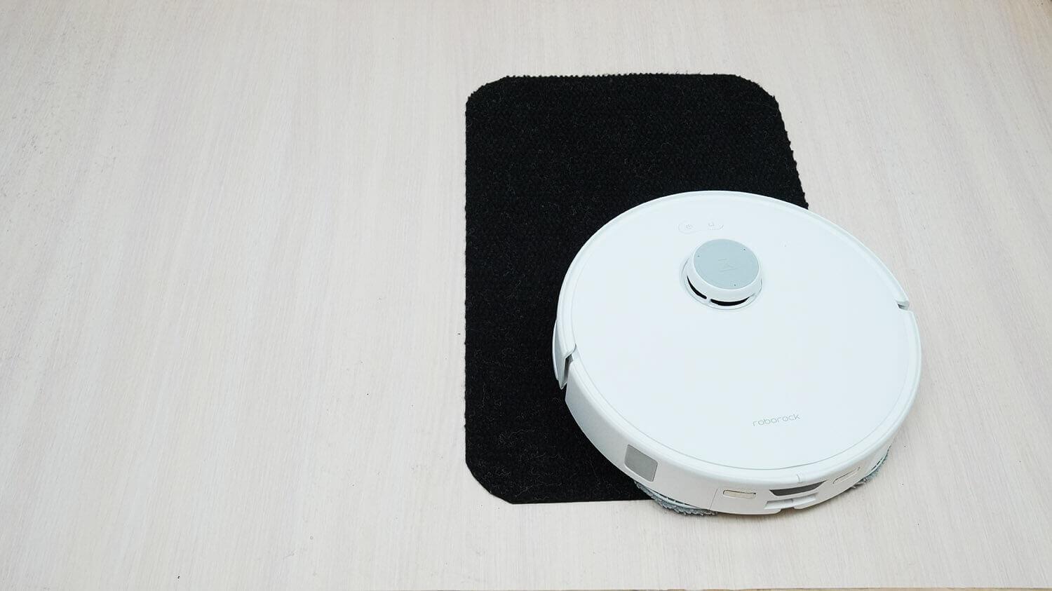 Važiavimas per juodus kilimus nesukelia problemų. Robotas slysta per juodą kilimą taip, lyg nieko nebūtų nutikę.