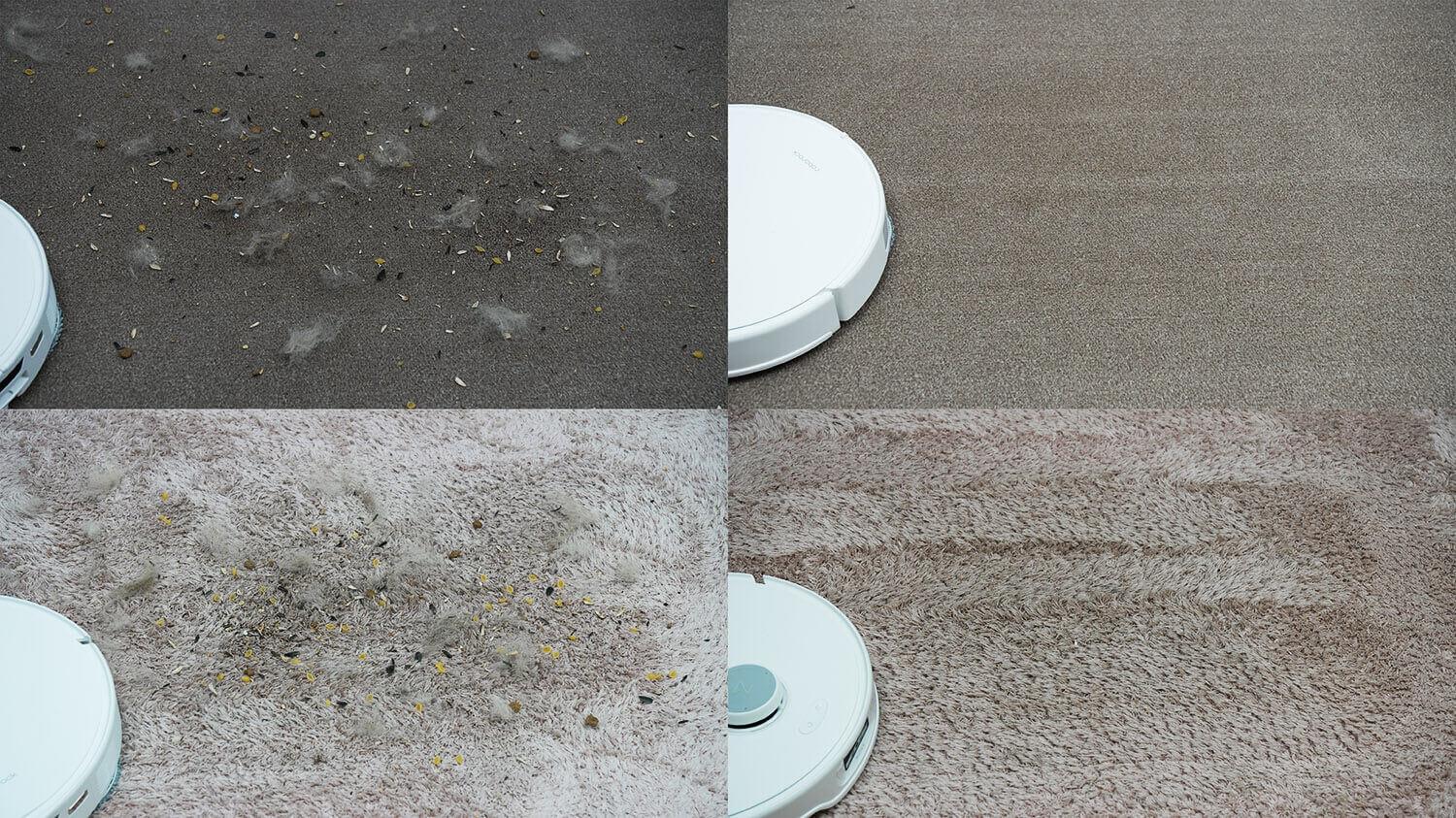 Kalbant apie kilimų grindų valymą šlapiuoju būdu, robotas siūlo kelis skirtingus sąveikos režimus. Jis gali atsargiai judėti aplink kilimą šlapio valymo metu arba gali įlįsti ir paliesti kilimą savo valymo pagalvėle, jei norite jį valyti robotu. Jis taip pat gali valyti kilimus šlapio valymo metu, automatiškai pakeldamas valymo pagalvėles ir net roboto korpusą, kai jis įeina į kilimą. Pastarasis variantas yra efektyviausias.