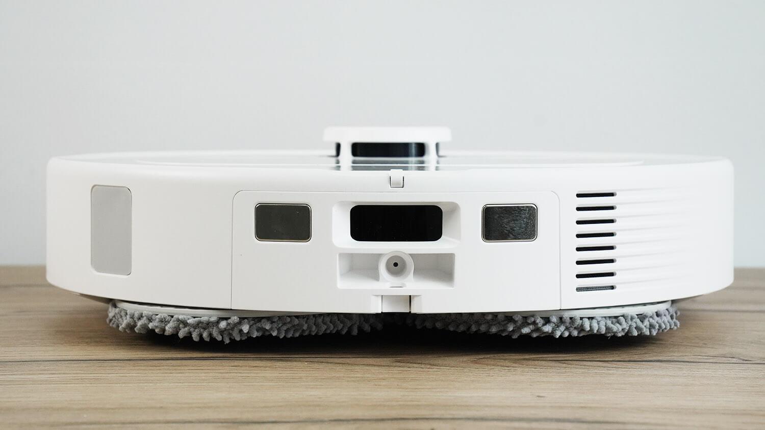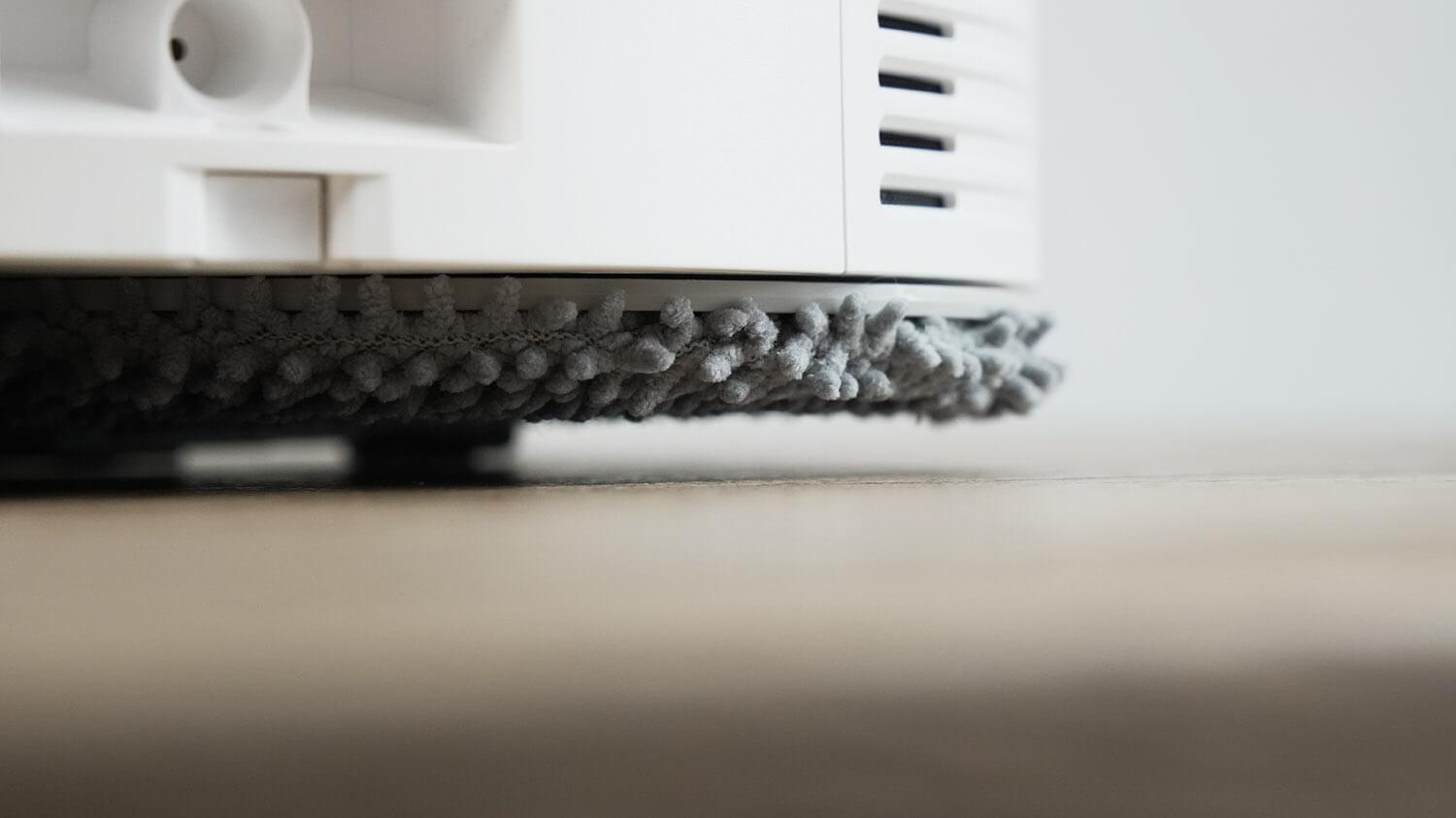 Valymo šluostės yra įprasto dizaino, tačiau medžiaga yra daug storesnė nei daugumos panašių. Kairioji valymo šluostė neturi ištraukiamo mechanizmo, kaip senesnis „Roborock Qrevo MaxV“. Todėl tarp valymo šluostės krašto ir grindjuostės bus akloji zona, kurios plotį patikrinsiu bandymais.