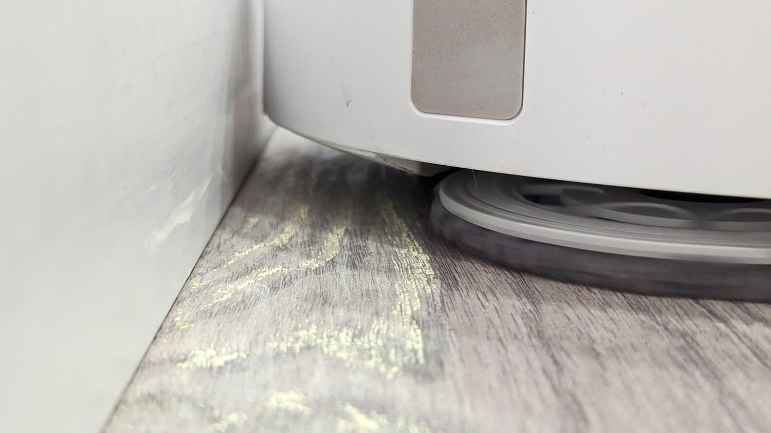 Kalbant apie akląsias zonas, kaip ir tikėtasi, palei grindjuostę yra siaura sritis, kuri yra daugelio mūsų apžvelgtų robotų dulkių siurblių silpnoji vieta. „Roborock Qrevo S“ atveju akloji zona yra vos mažiau nei 50 mm pločio.