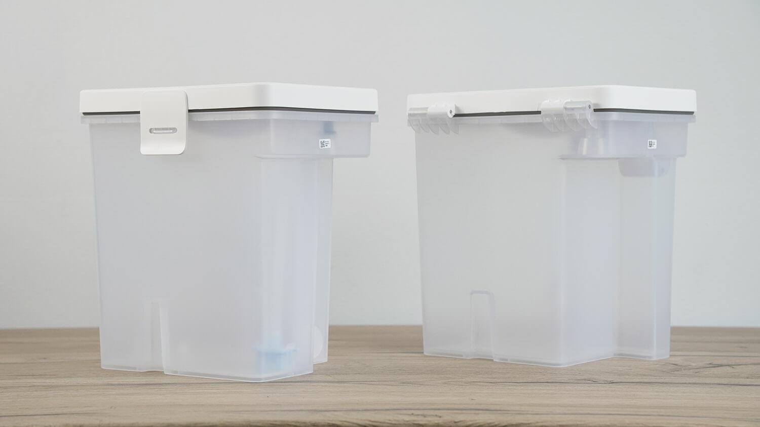 Vandens bakų dydis buvo šiek tiek sumažintas, tačiau jie vis dar gana talpūs. Švaraus vandens bako talpa yra 4 litrai, o nešvaraus vandens – 3,5 litro. Standartinio „Qrevo“ bakų talpa yra atitinkamai 5 ir 4,2 litro.