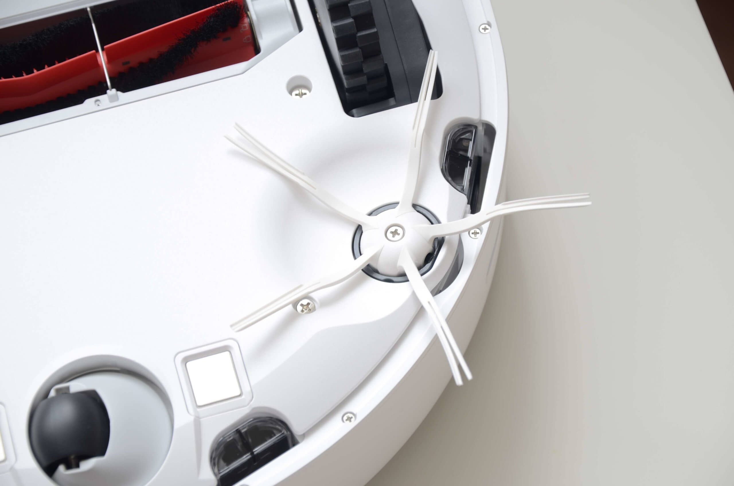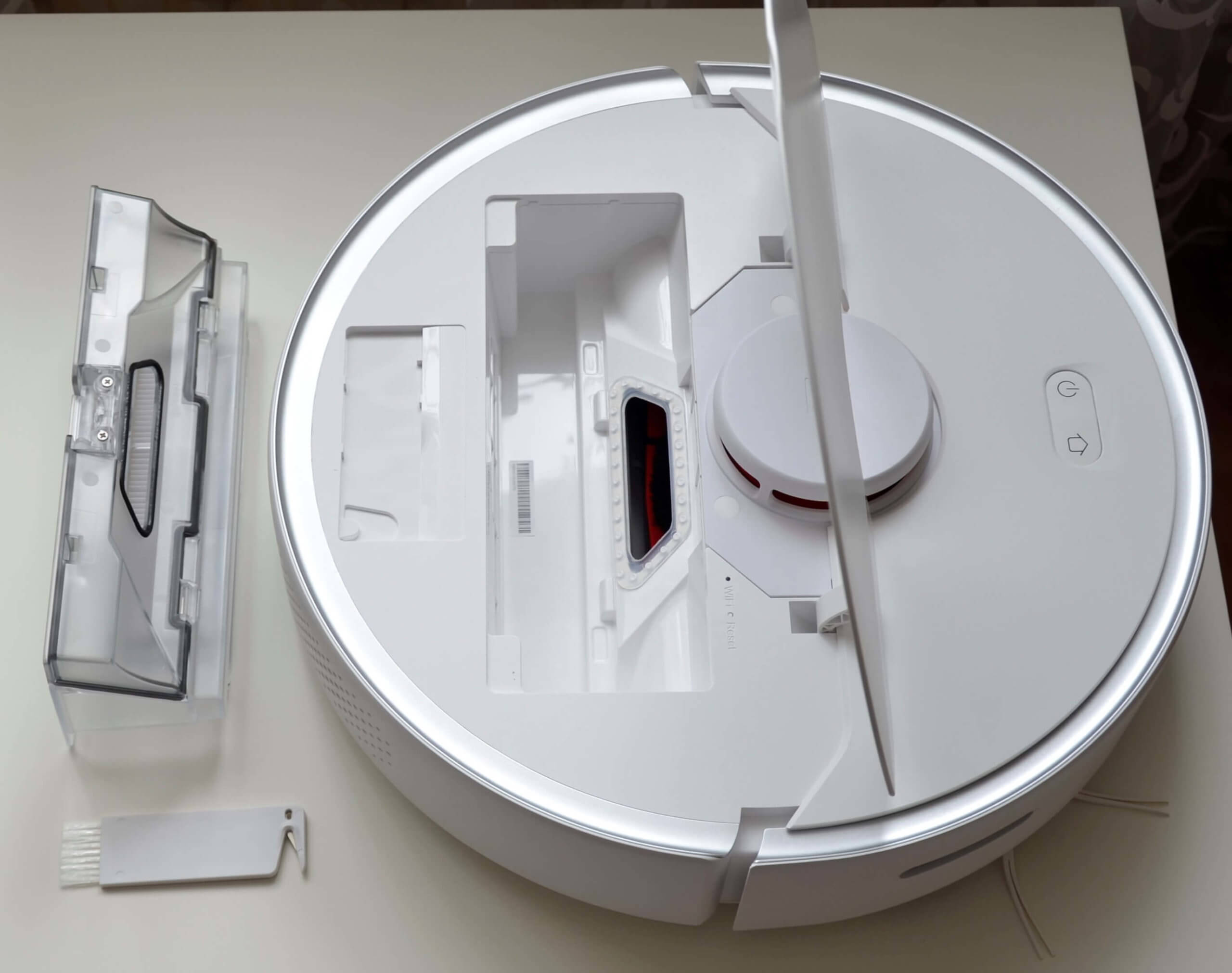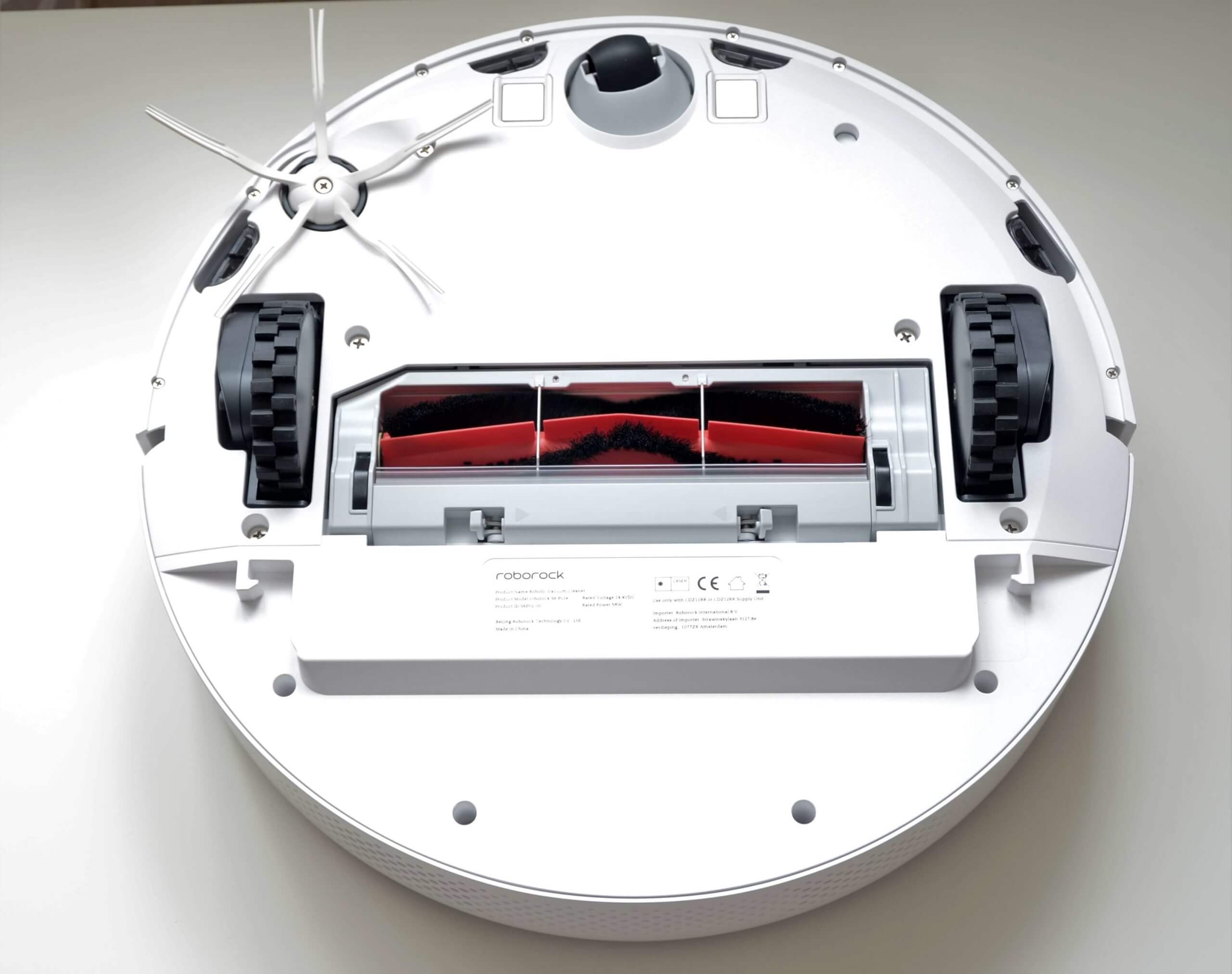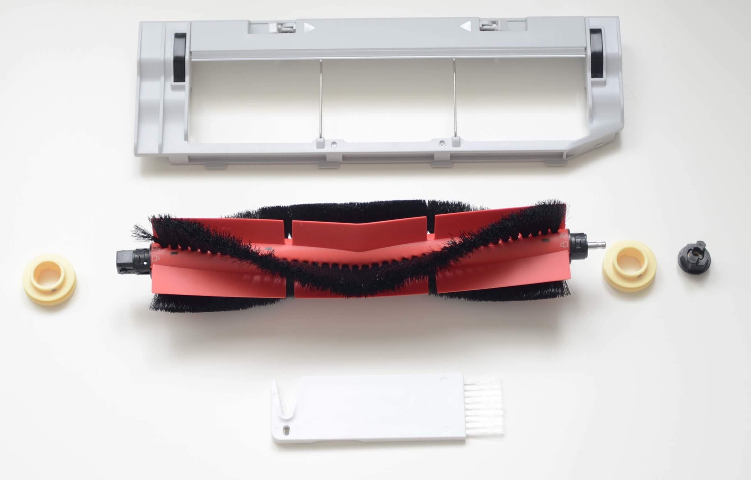 Po viršutiniu dangteliu yra dulkių surinktuvas ir specialus šepetys jam valyti, taip pat centrinis turbo šepetys. „Roborock“ sumaniai suprojektavo šio šepečio laikymo vietą, užtikrindama, kad jis visada būtų lengvai pasiekiamas ir nepasimestų naudojimo metu.