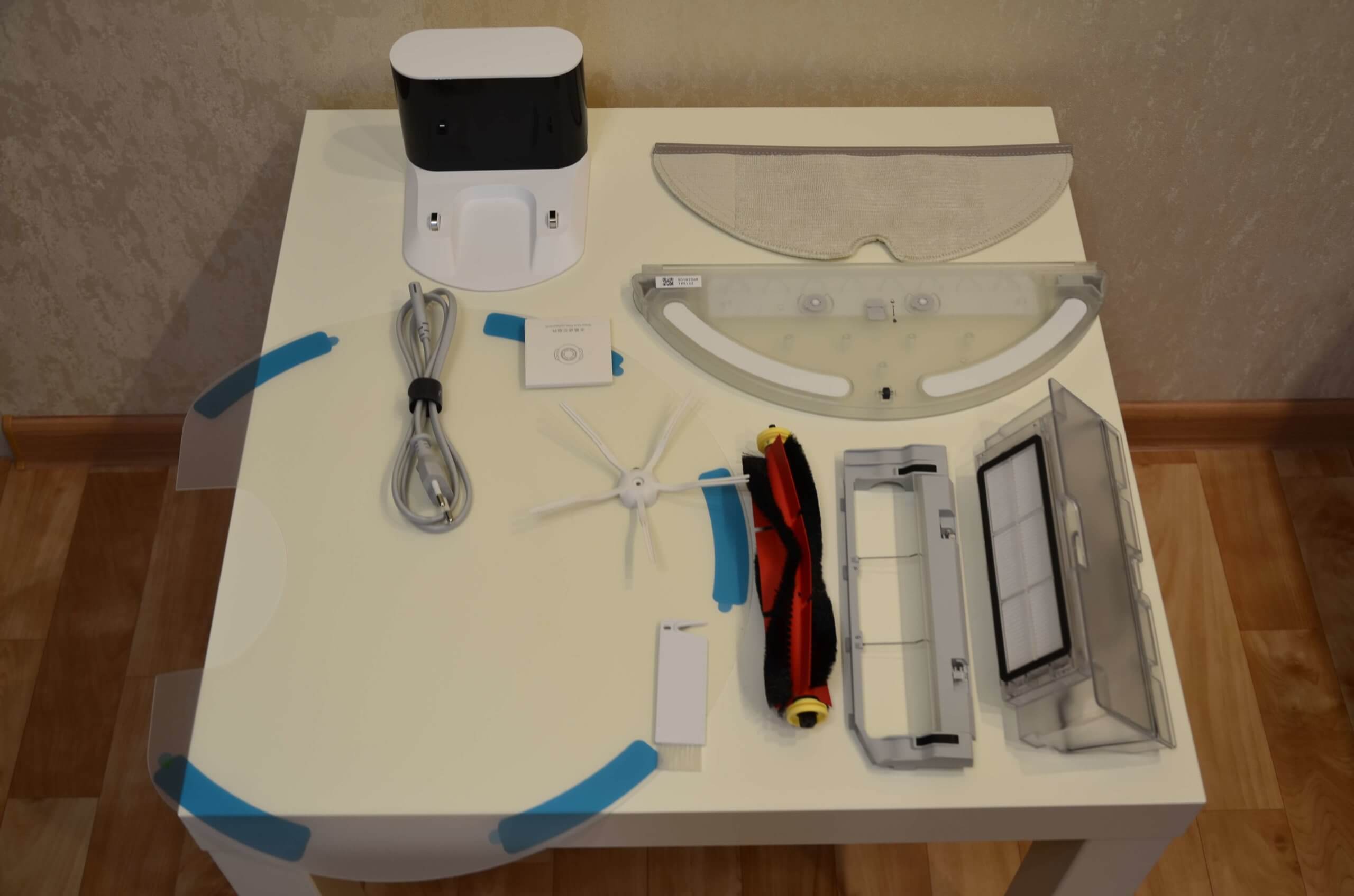 Pradėkime nuo išpakavimo. Robotas pristatomas ryškioje firminėje dėžutėje. Pakuotės turinys yra prastesnis nei flagmano modelio. Roborock S6/T6, o tai leido sumažinti naujo produkto kainą.