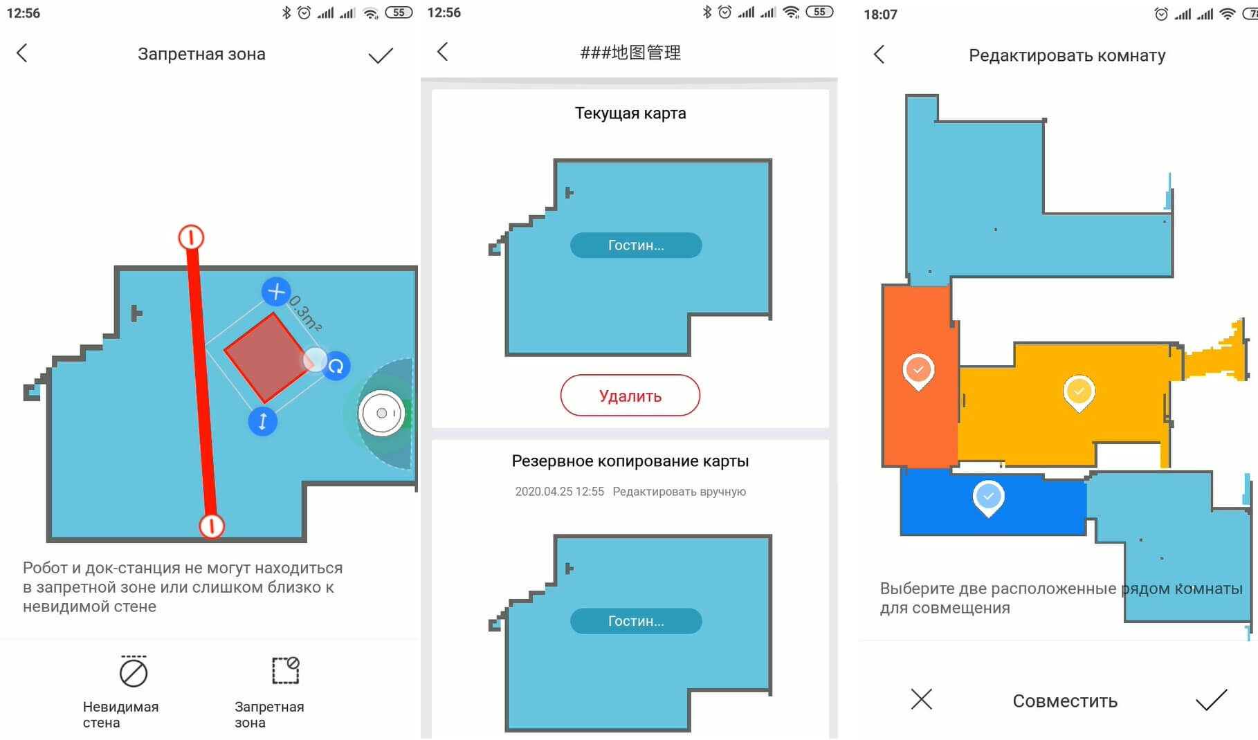 Galimybė žemėlapyje nustatyti virtualias sienas ir draudžiamas zonas yra naudinga. Šios funkcijos atsiras iškart po to, kai robotas sukurs kambario žemėlapį ir išsaugos jį savo atmintyje. Beje, robotas gali saugoti iki trijų valymo žemėlapių: dabartinį ir du atsarginius. Todėl „Roborock S6 Pure“ tinka dviejų aukštų namų valymui.