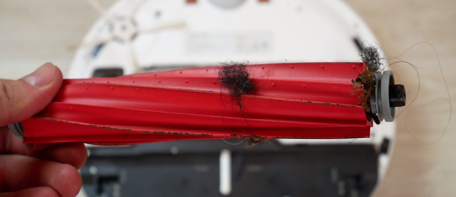 Svarbus klausimas, kurį manęs paprašė patikrinti, buvo tai, ar silikoninį šepetėlį galima pakeisti šerelių formos šepetėliu, kuris yra visuose kituose „Roborock“ robotuose. Šepetys telpa į angas, o jo ilgis nepasikeitė. Tačiau patys šereliai yra ilgesni, todėl juos sunku sukti. Bandymų metu pademonstruosiu kiekvieno šepečio valymo našumo skirtumą.