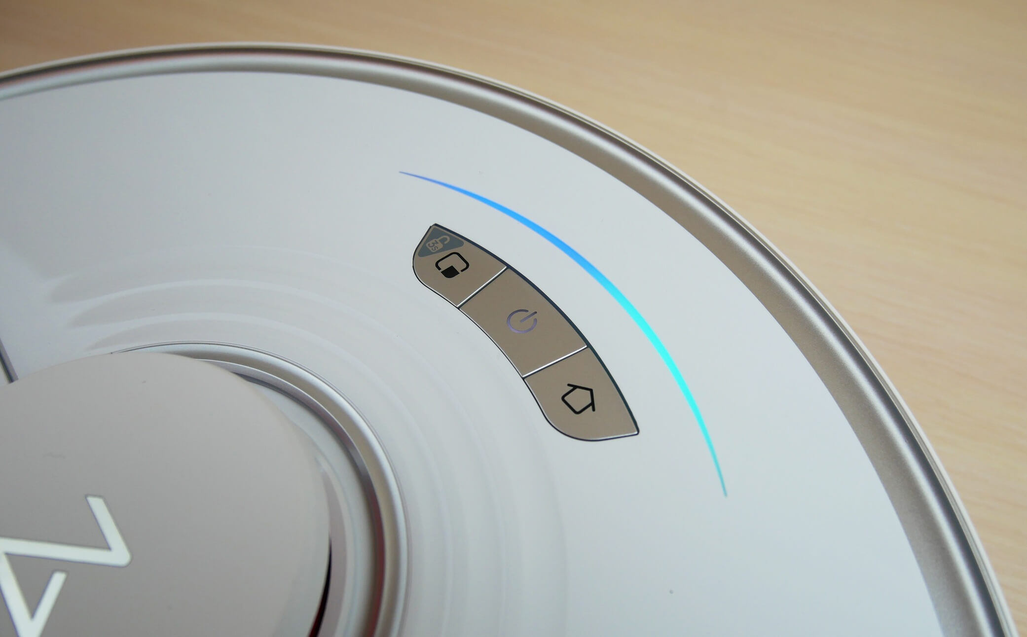 Pirmas dalykas, kurį pastebėsite, yra indikatoriaus lemputė valdymo skydelio priekyje. Ji šviečia skirtingomis spalvomis, priklausomai nuo roboto būsenos. Pavyzdžiui, valymo metu indikatoriaus lemputė šviečia mėlynai, o įkrovimo metu – žaliai. Ji atrodo gana stilingai.