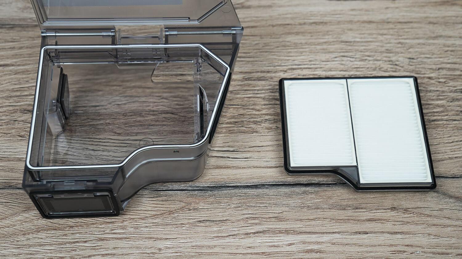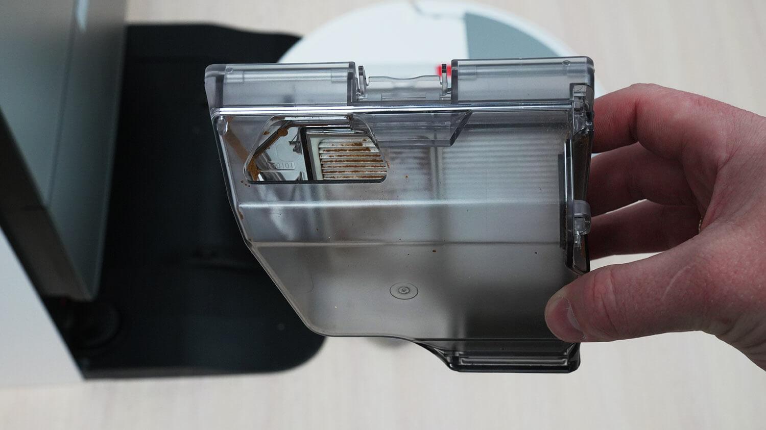 270 ml talpos dulkių surinktuvas yra po viršutiniu dangčiu. Jo forma atnaujinta, o HEPA filtras taip pat yra šiek tiek didesnis nei ankstesnių modelių. Gamintojas leidžia surinktuvą ir filtrą plauti vandeniu. Filtravimo sistema pagrįsta tik HEPA filtrais. Šio roboto vandens bakas nėra nuimamas. Jis paslėptas korpuso viduje ir talpina iki 70 ml vandens. Vanduo per stotelę pumpuojamas automatiškai.