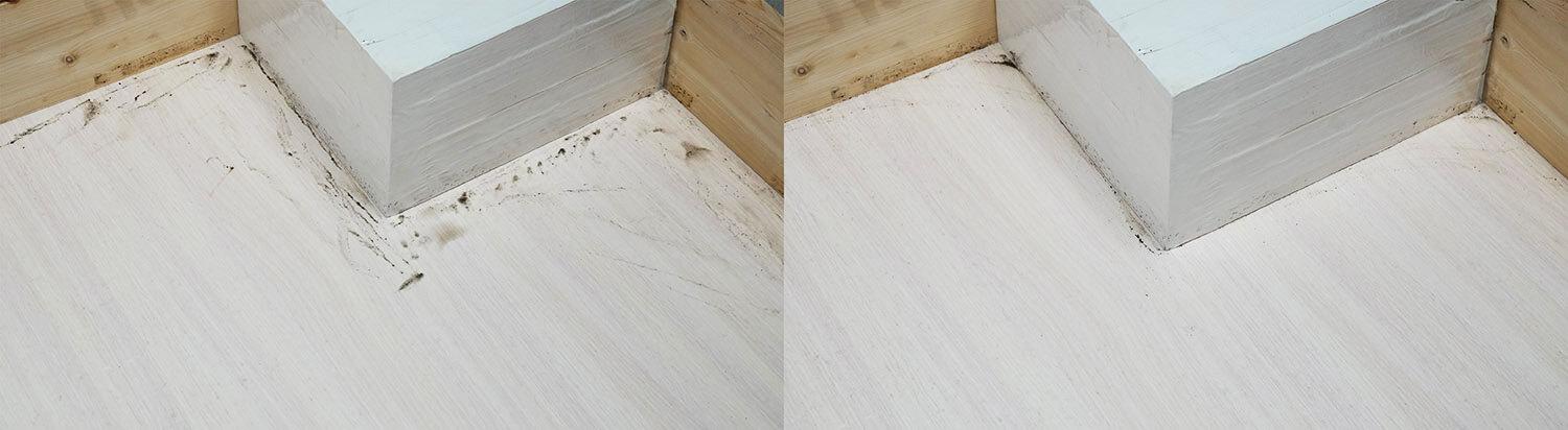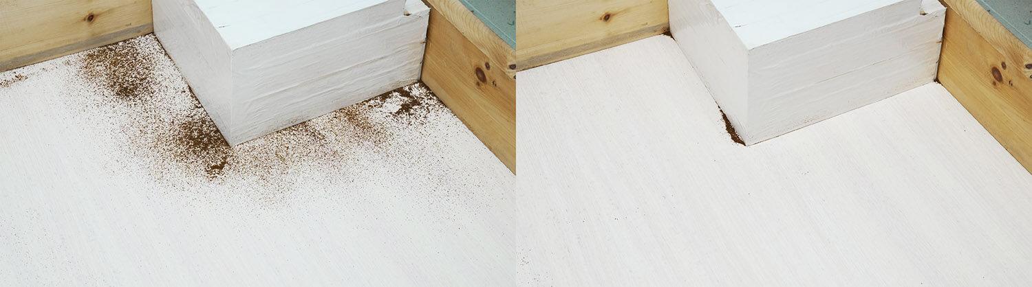 Nešvarumų šalinimo efektyvumas puikus. Šluostė tvirtai prispaudžia prie grindų ir sugeria nešvarumus. Tuo pačiu metu, dėl papildomos šluostės, išsikišančios iš grindjuostės, grindjuostėje lieka tik minimalus, siauras plotas, vos keli milimetrai. Tai privalumas!