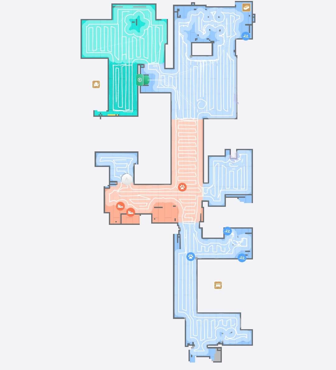 Kalbant apie navigaciją namuose, „Roborock S9 MaxV Ultra“ valo kambarį po kambario, pirmiausia palei perimetrą, o tada vingiuotu raštu. Po kiekvieno kambario, kaip nurodyta nustatymuose, robotas dulkių siurblys grįžta į stotelę ir išplauna valymo pagalvėles, tada grįžta valyti nuo ten, kur baigė. Grįždamas į stotelę ir atgal į valymo vietą, robotas surenka ne tik valymo pagalvėles, bet ir šepečius. Tai yra pliusas. Nėra neišvalytų vietų, valymo greitis yra didelis, o šis modelis turi puikią navigaciją!