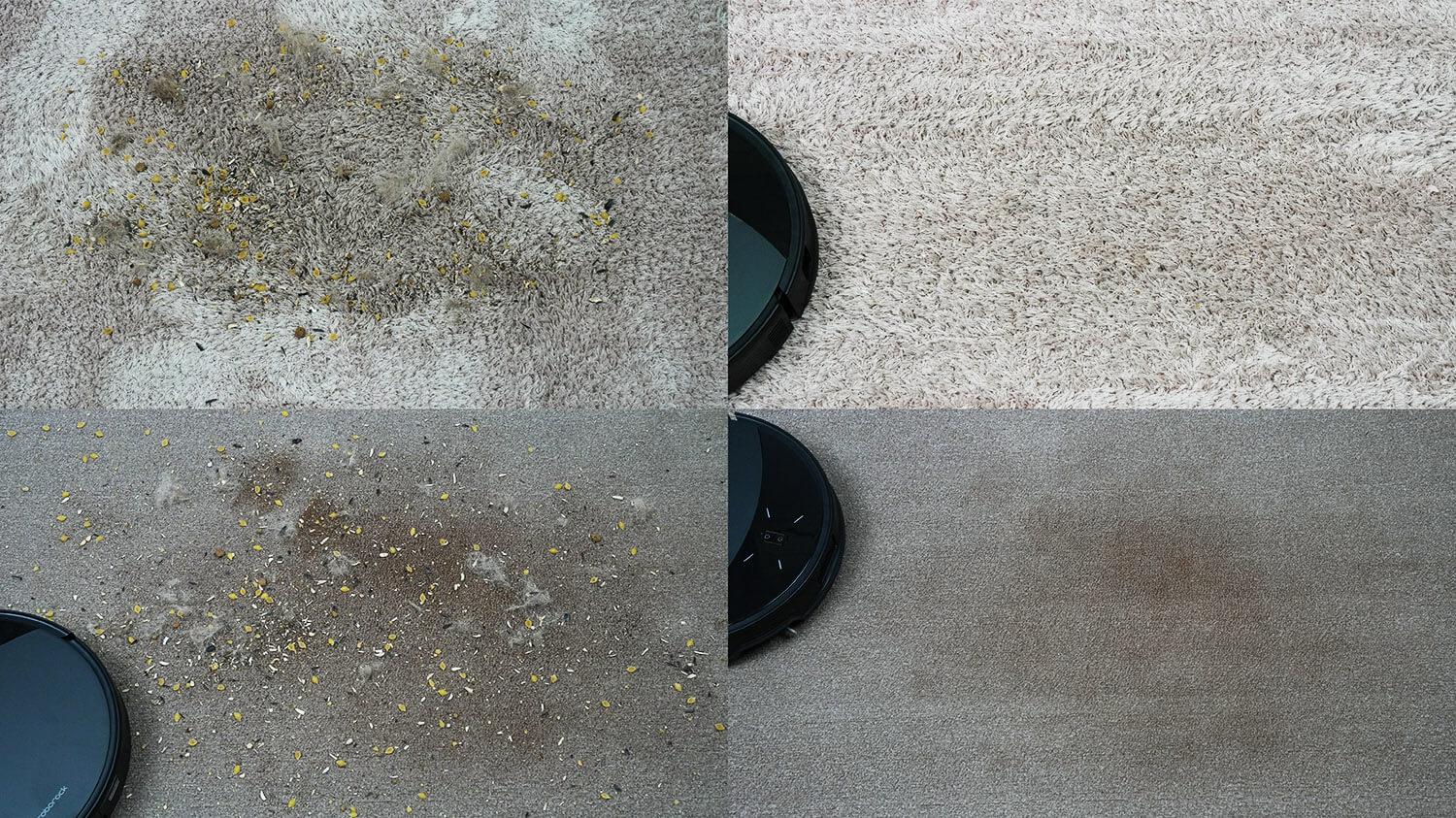 Kalbant apie šlapią kiliminių grindų valymą, robotas siūlo kelis skirtingus sąveikos režimus. Šlapio valymo režimu jis gali atsargiai judėti aplink kilimą arba, jei norite, į kilimą jis gali įeiti ir jį paliesti valymo pagalvėle. Jis taip pat gali valyti kilimus šlapio valymo metu, automatiškai pakeldamas valymo pagalvėles ir net roboto korpusą, kai įeina į kilimą. Jis taip pat gali automatiškai nuimti valymo pagalvėles valymo stotelėje ir išvalyti kilimus be jų, visiškai pašalindamas bet kokį šlapio valymo pagalvėlių sąlytį su kilimo krūva. Pastarieji du variantai yra efektyviausi.