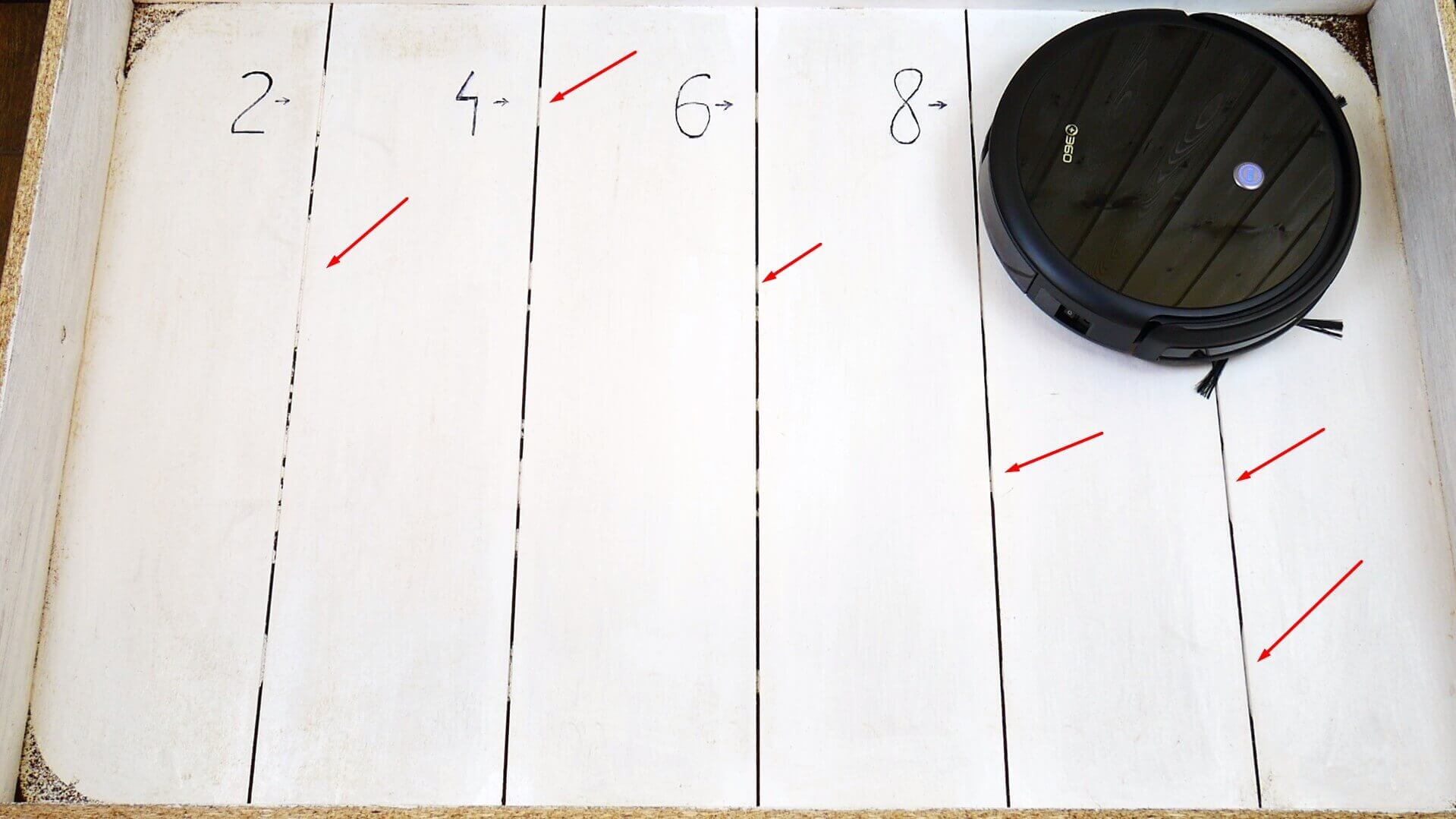 Pirmiausia robotas zigzago raštu išvalo visą prieinamą plotą, tada persijungia į perimetro režimą ir grįžta į bazę. Jis sugebėjo aprėpti visą prieinamą plotą niekur neužstrigdamas, tačiau plotas aplink dėžę ar kėdės kojas nebuvo itin išvalytas. Įprastu valymo greičiu maždaug 10 kvadratinių metrų plotą išvalyti jam prireikė 17 minučių. Svarbu pažymėti, kad robotas nesukuria realaus laiko žemėlapio. Apskritai, atsižvelgiant į mažą roboto kainą ir giroskopą, dėl navigacijos nusiskundimų nėra.