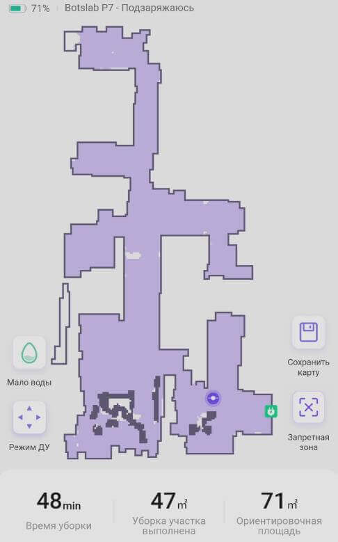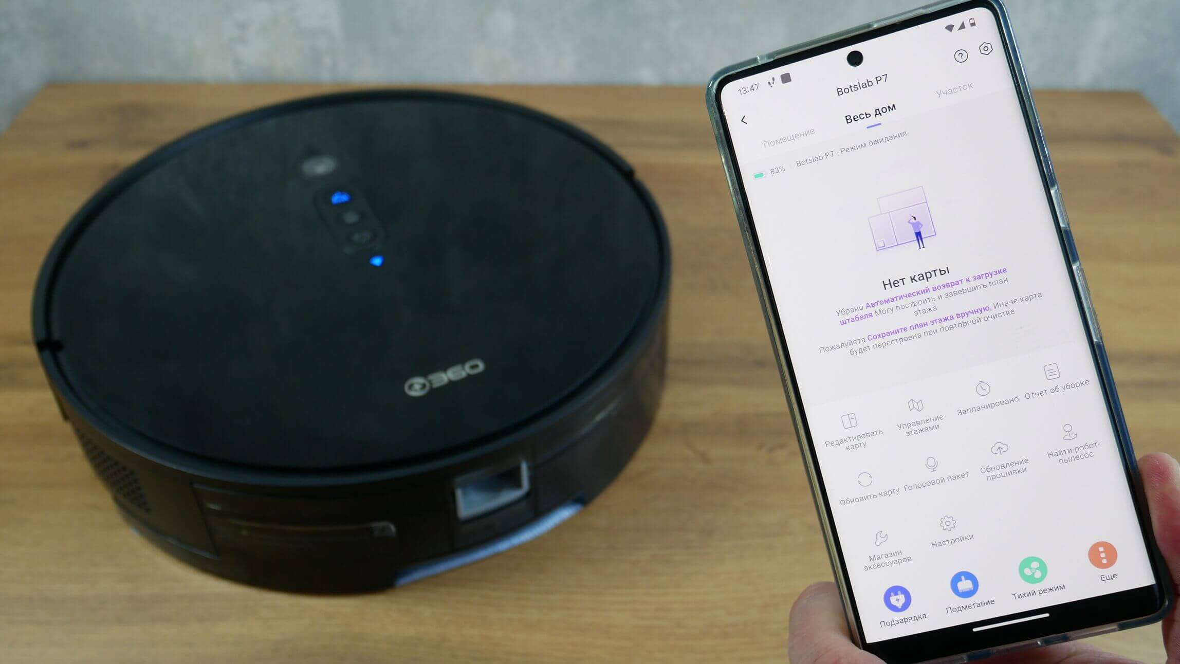 Kalbant apie navigaciją namuose, „360 P7“ valo visą plotą zona po zonos, pirmiausia gyvatės principu, o tada palei perimetrą. Atsižvelgiant į tai, kad jis nešluoja aplink objektus atskirai, o tik pakeičia kryptį juos palietęs, lieka mažų, neišvalytų plotų. Tai nėra gerai. Be to, robotas dulkių siurblys keistai apskaičiuoja išvalytą plotą; jis yra beveik dvigubai didesnis nei tikrasis plotas. Kitas pastebėjimas: „360 P7“ labai ilgai ieško vietos palikęs bazę arba jei norite nutraukti automatinį valymą ir, pavyzdžiui, pasirinkti kambarį, kuriame robotas turėtų valyti. Jis pradeda važiuodamas aplink mažą kvadratą, bandydamas nustatyti vietą. O jei net šiek tiek pertvarkote baldus, pavyzdžiui, perkeldami kėdę, yra didelė tikimybė, kad robotas negalės nustatyti vietos ir turės pradėti iš naujo. Apskritai turiu keletą nusiskundimų dėl navigacijos. Jie nėra kritiški, tačiau, palyginti su tais pačiais biudžetiniais „lidar“ modeliais, robotas yra daug lėtesnis ir palieka mažas neišvalytas vietas.