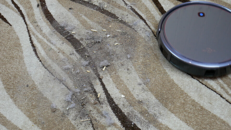 Panaši situacija buvo ir valant kilimus. Ant kilimo buvo išbarstytos tos pačios šiukšlės, o robotas jas kruopščiai išvalė. Liko nedidelis kiekis plaukų, bet taip yra todėl, kad robotas perėjo tą vietą tik vieną kartą. Dvigubas perėjimas tikrai nebūtų palikęs nieko.