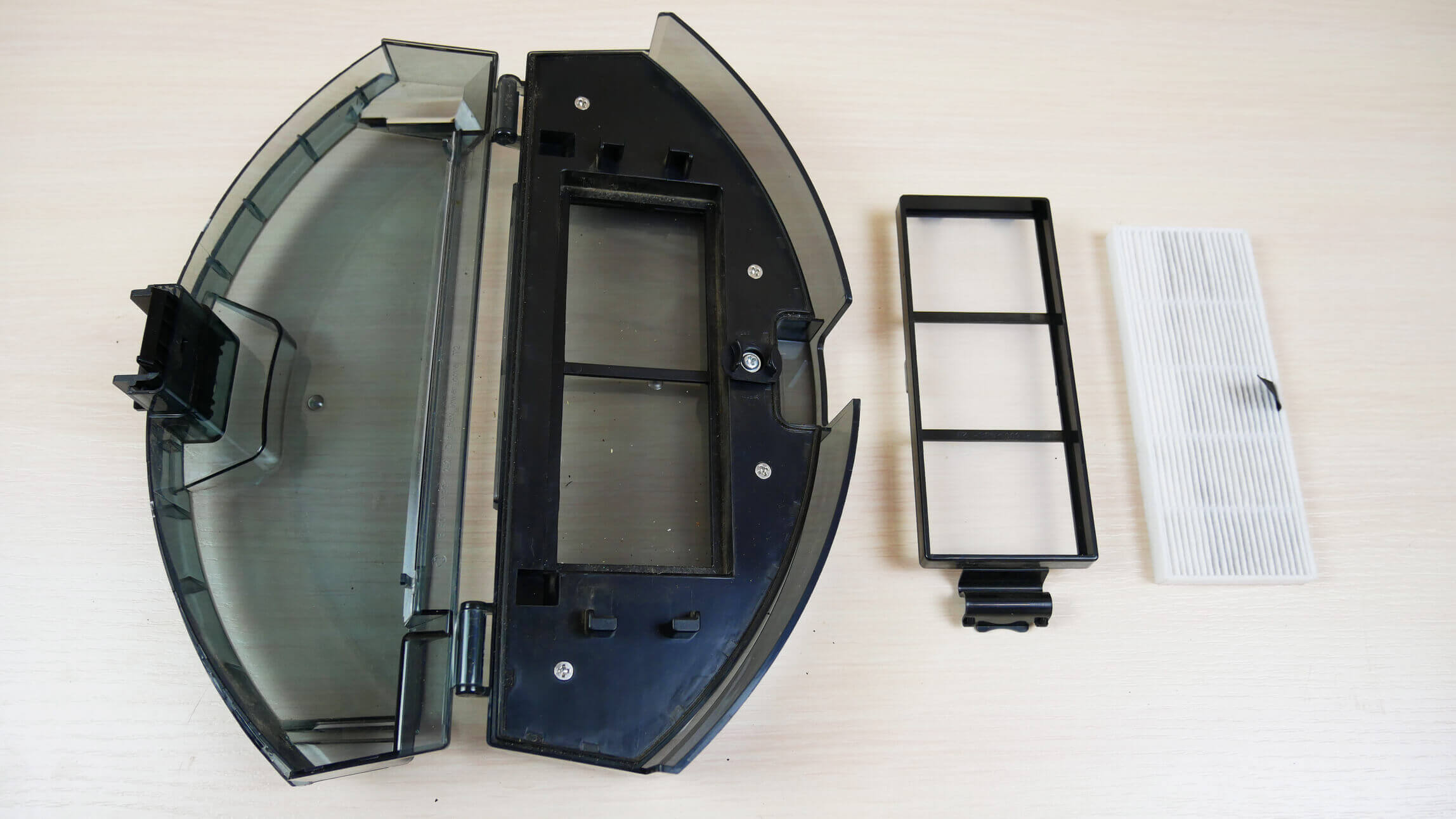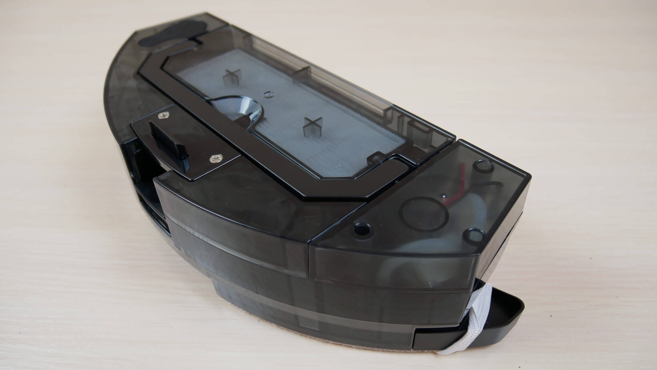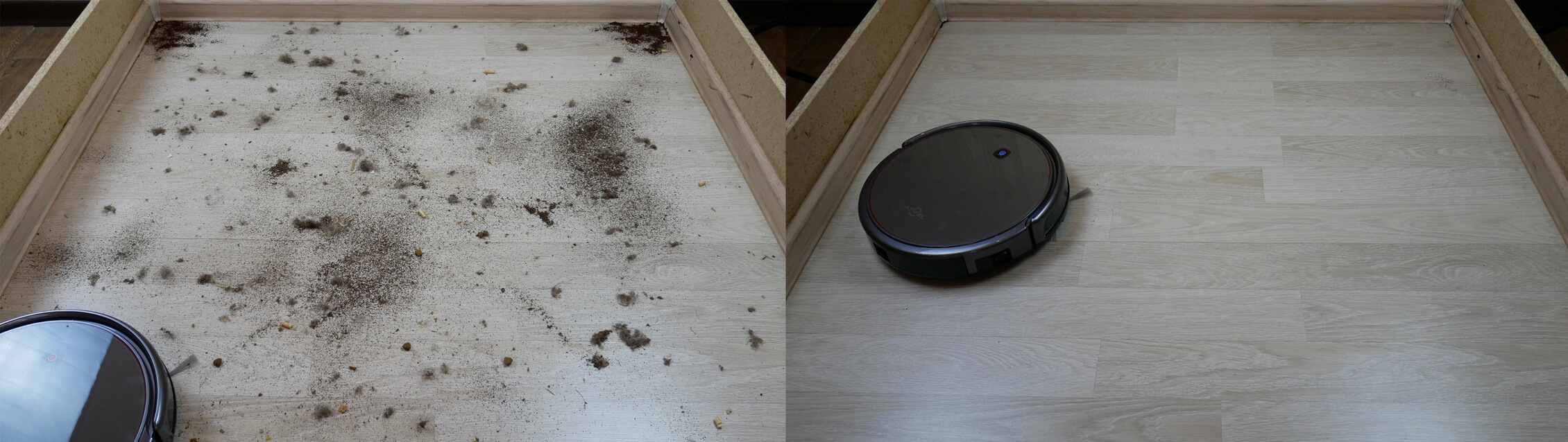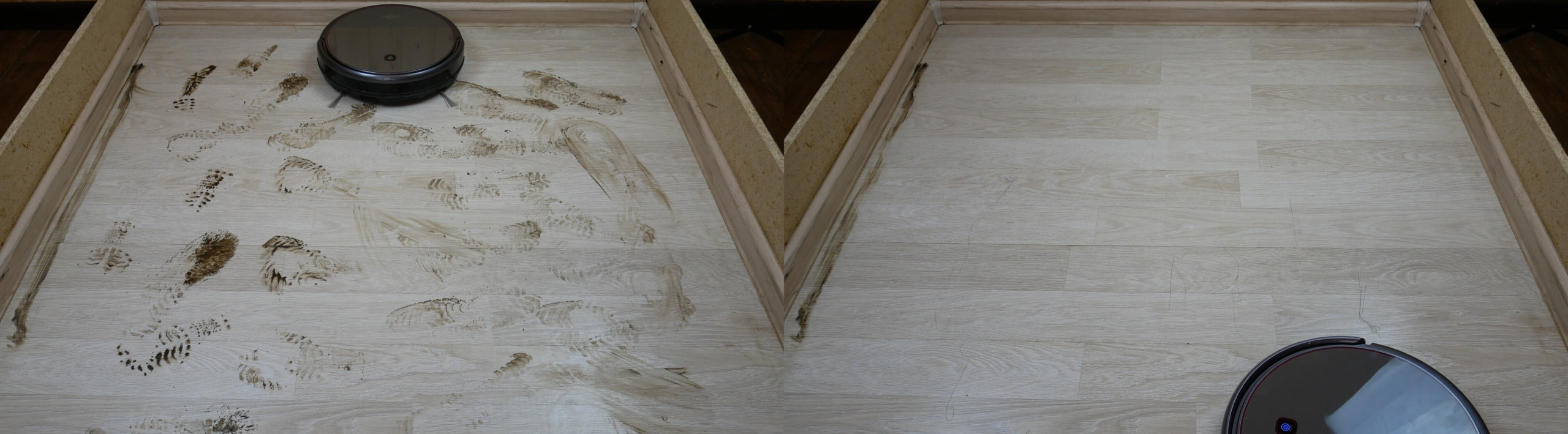 Pridžiūvusių nešvarumų pašalinimo kokybė taip pat puiki. Stovas praktiškai švarus, paliekant tik nedidelę juostelę palei grindjuostę, kurios robotiniai dulkių siurbliai dėl savo konstrukcijos negali išvalyti.