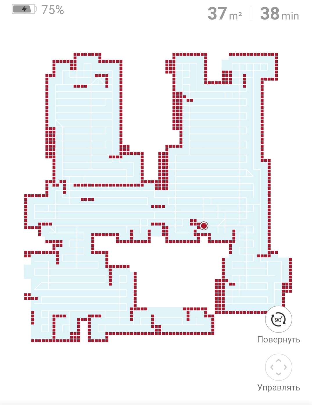 Kalbant apie navigaciją namo viduje, situacija panaši: pirmiausia valoma gyvatiškai, o tada perimetru. Tačiau svarbu atkreipti dėmesį, kad žemėlapių sudarymo tikslumas yra didelis, kaip ir giroskopo pagrindu veikiančio roboto. Valymo greitis taip pat didelis. Svarbiausia, kad neliko neišvalytų vietų. Šis testas sėkmingai išlaikytas.