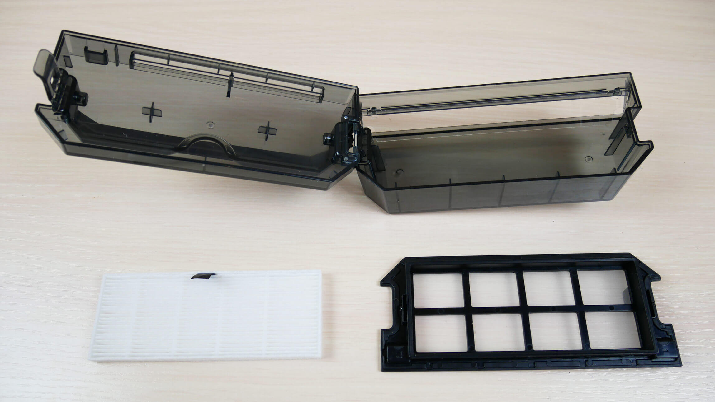 Sauso valymo našumas yra labai aukštas. Plaukai ir naminių gyvūnėlių plaukai buvo prilipę prie centrinio ir šoninių šepečių, tačiau didžioji dalis šiukšlių buvo surinkta dulkių konteineryje. Bandymas išlaikytas!