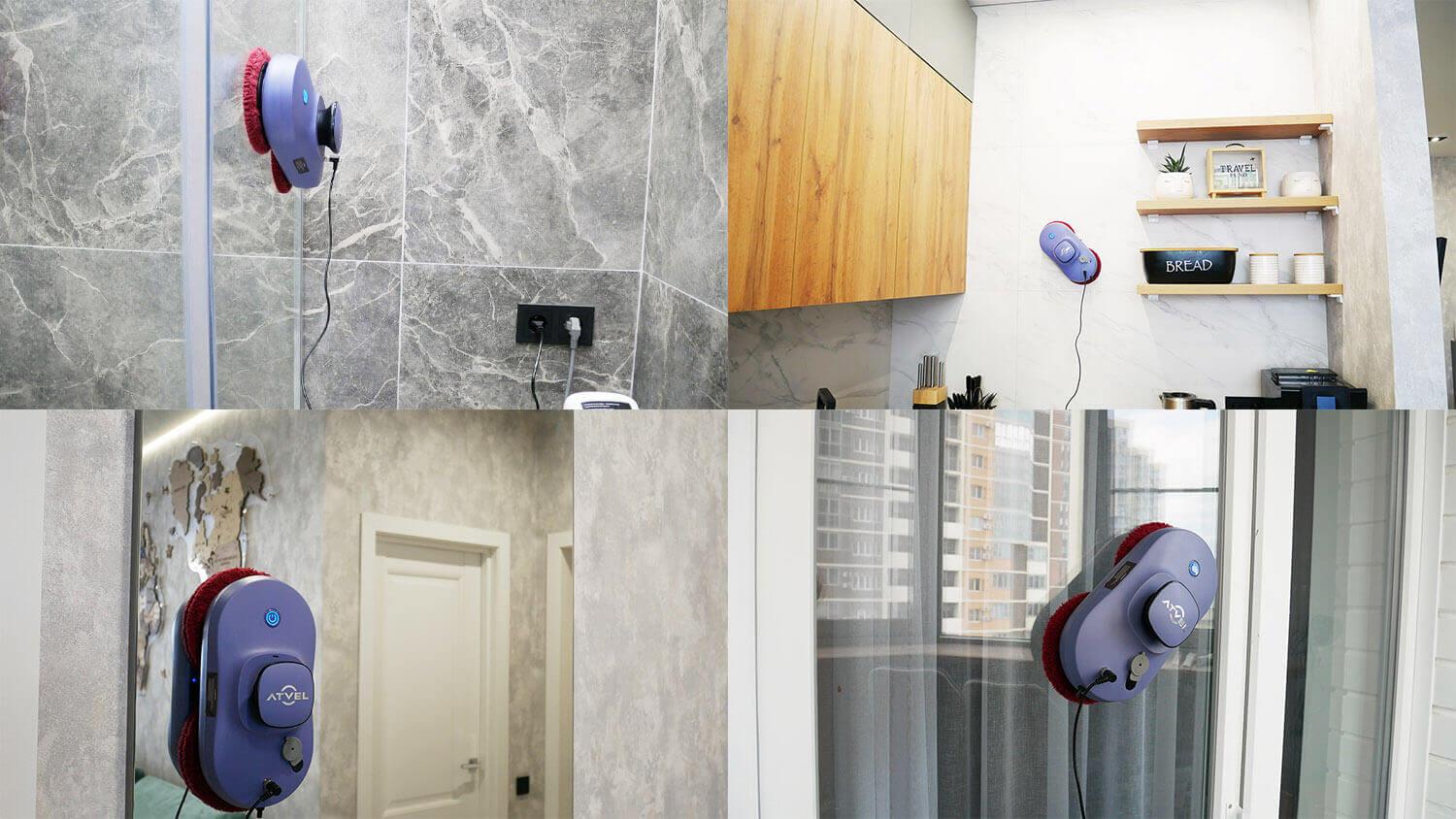 Šis robotas taip pat gali būti naudojamas plytelėmis išklijuotoms sienoms, dušo kabinoms ir veidrodžiams valyti. Juo galima valyti net horizontalius paviršius. Tačiau nerekomenduočiau jo naudoti berėmėms langų valymui. Bandymo metu jis kelis kartus sugedo, peršovė paviršių ir prarado sukibimą su veidrodžiu.