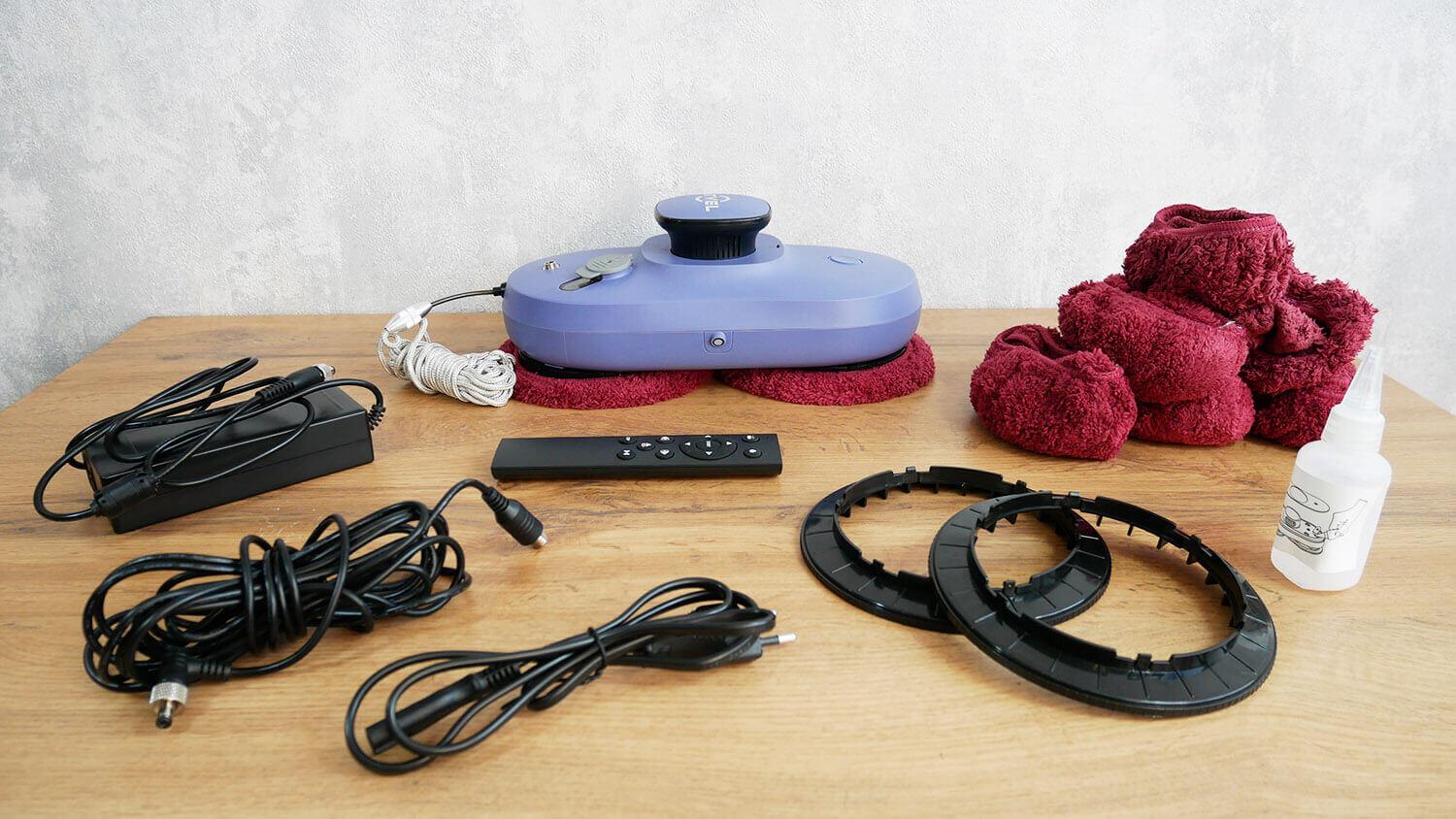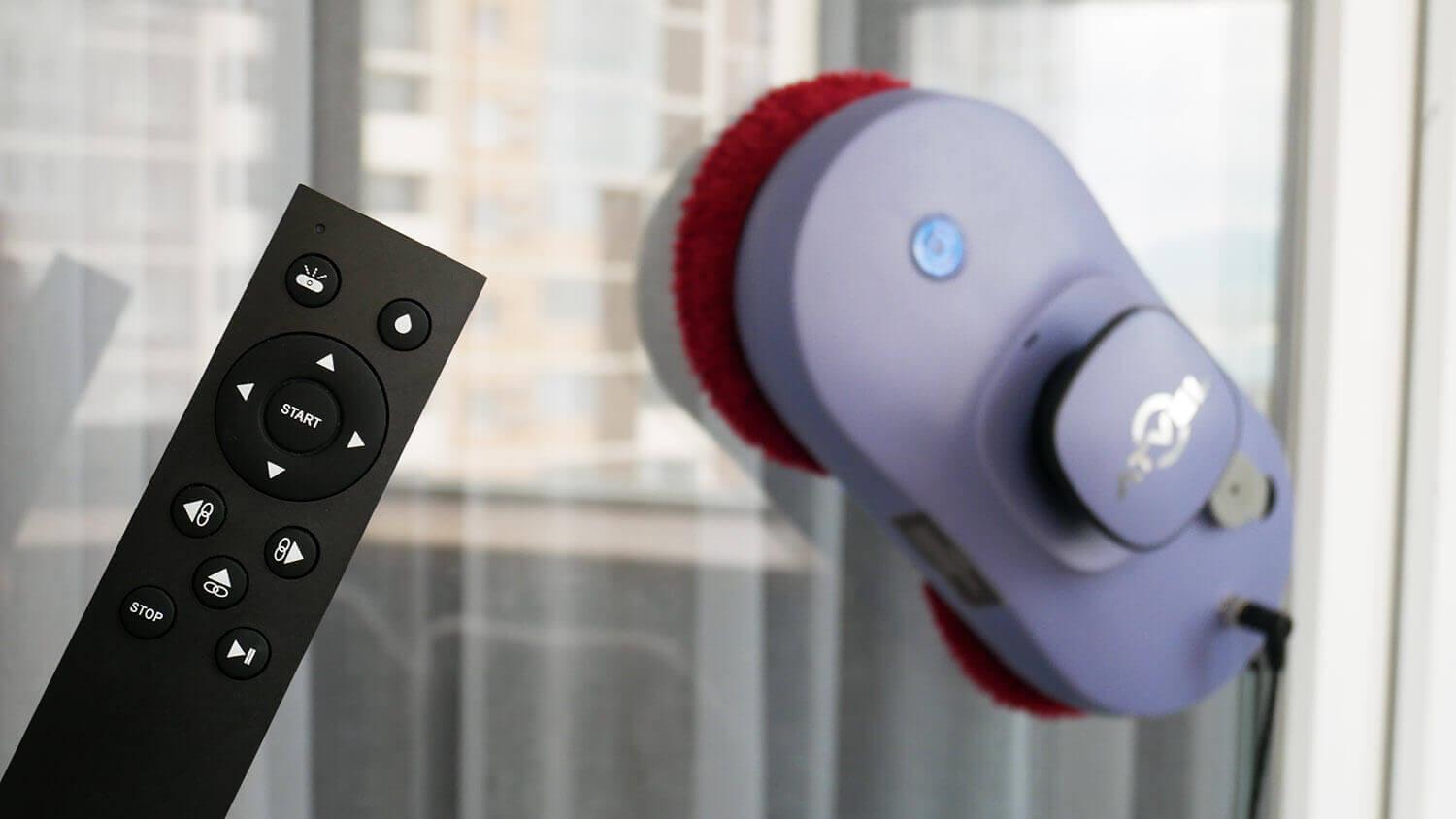 Visos langų valymo roboto funkcijos yra nuotolinio valdymo pulte. Tai automatinis skysčio tiekimo įjungimas ir išjungimas, priverstinis skysčio tiekimas, rankinis valdymas, langų valymo pradžia, vienas iš trijų automatinių režimų, valymo sustabdymas ir paleidimas / pristabdymas. Vėlgi, nieko neįprasto, tačiau šių funkcijų pakanka pagrindinei roboto užduočiai atlikti.