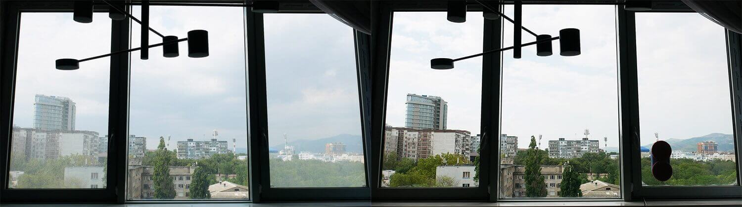 O nešvarumų pašalinimo kokybė neprilygsta aukščiausios kokybės gaminiams. Pateikiame vizualų langų palyginimą prieš ir po:
