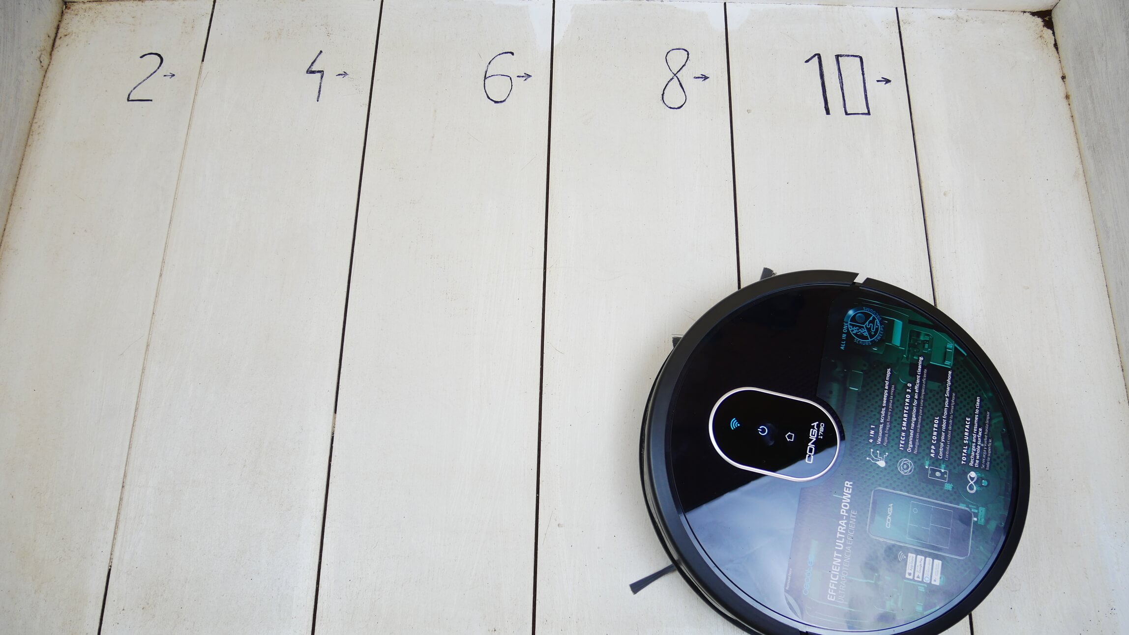 Pereikime prie bandymų. Pirmiausia patikrinsime „Cecotec Conga 1790 Ultra“ navigaciją kambaryje su kliūtimis. Palikęs bazę, robotas dulkių siurblys pradeda valyti visą prieinamą plotą gyvatės principu. Žinoma, jis nevalo aplink dėžę ar kėdžių kojas. Be to, po kontrolinio pasivaikščiojimo aplink perimetrą jis vėl pradėjo valyti jau išvalytas vietas ir tęsė taip, kol po 30 minučių buvo priverstas grįžti į bazę, kad įsikrautų. Bent jau įkrovimo stotelę jis rado be jokių problemų. Šis bandymas nepavyko.
