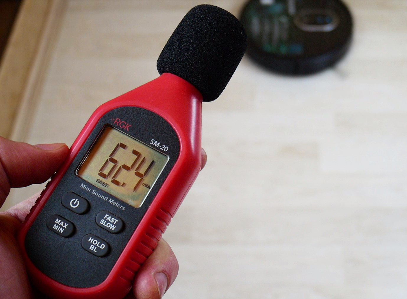 Galiausiai išmatavome roboto triukšmo lygį skirtingais režimais. Išjungus siurbimą, jis svyravo nuo 55 iki 56 dB. Minimalaus galingumo režimu triukšmo lygis pakilo iki 57 dB. Vidutinio galingumo režimu triukšmo lygis siekė 58 dB, o turbo režimu didžiausias triukšmo lygis buvo 60 dB. Reikia pripažinti, kad šis robotas dulkių siurblys yra gana tylus, o jo siurbimo galia yra šiek tiek didesnė nei vidutinė.