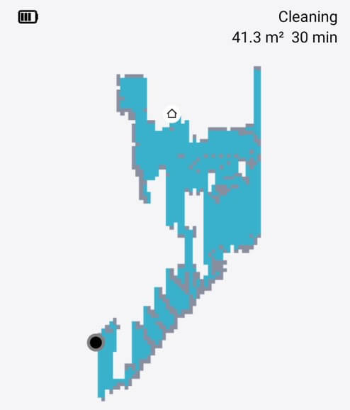 Kalbant apie navigaciją namuose, situacija pasikartojo. Iš pradžių robotas dulkių siurblys siurbė gyvatėmis, bet vėliau viename kambaryje navigacija tapo nepastovi ir jis tiesiog pradėjo cikliškai judėti nuo sienos prie sienos. Matyt, yra tam tikrų problemų su giroskopu, todėl jis tiesiog pasiklysta dideliuose plotuose. Tačiau, kai priverstas grįžti, jis randa savo pagrindinę stotį net ir iš tolimiausio kambario.