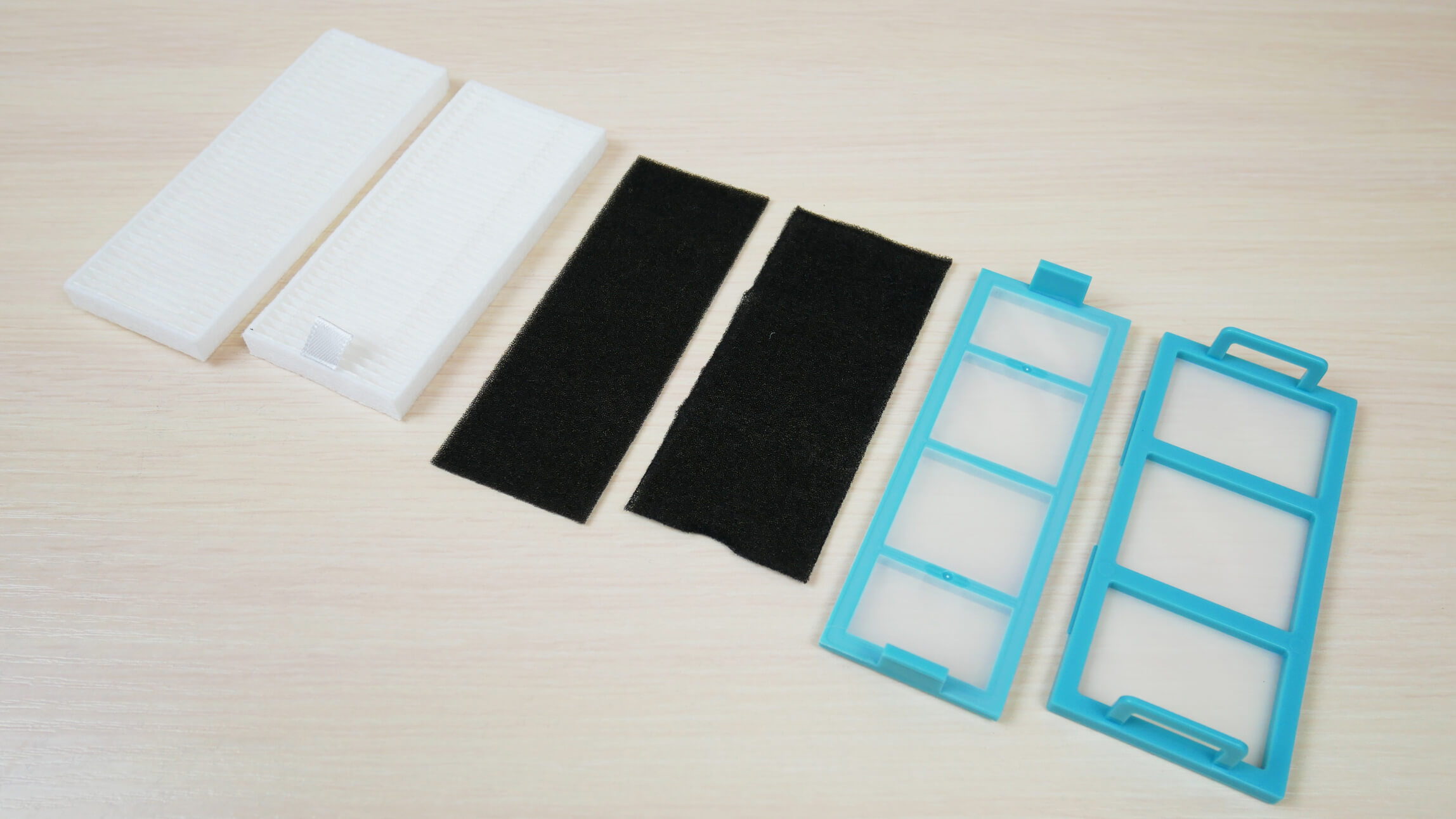 - Keičiamas centrinis šepetys su šerelių-žiedlapio struktūra (vėlgi, robotas iš dėžutės tiekiamas su guminiu šepečiu).