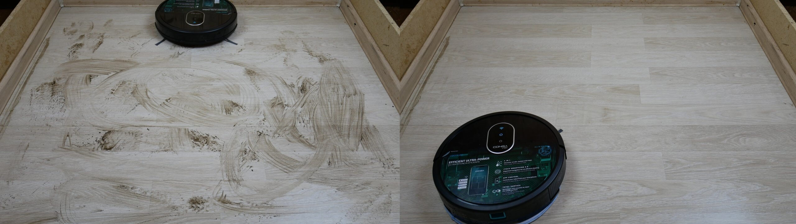 Vis dėlto „Conga 1790“ gali pasigirti puikiu valymo efektyvumu net ir šiek tiek pridžiūvusius nešvarumus. Po dviejų plovimų nelieka jokių nešvarumų ar dryžių. Yra nedidelė, siaura vieta palei grindjuostę, tačiau ne visi robotai dulkių siurbliai valo šią vietą. Bent jau ne visi apžvelgti modeliai.