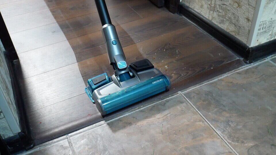 Štai vaizdinis pavyzdys, kaip „Cecotec Conga RockStar 1500 Ultimate ErgoWet“ gali vienu metu siurbti ir šluostyti grindis. Tik įsitikinkite, kad siurbliu lėtai stumkite šiukšles, kad jis jas greitai surinktų ir nesušlapintų šluoste.