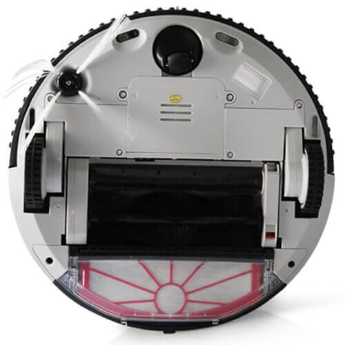 - Robotas dulkių siurblys dviem pagrindiniais šepečiais šluoja grindų paviršių, o šoniniu šepečiu valo šiukšles palei grindjuostes ir sienas.