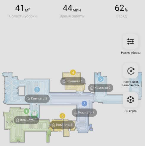 Kalbant apie navigaciją namuose, robotas dulkių siurblys valo kambarį po kambario, sekdamas perimetrą, o tada vingiuotu raštu. Kas 10 kvadratinių metrų, kaip nustatiau, jis grįžta į stotelę ir išskalauja šluostes, o tada tęsia valymą nuo ten, kur baigė. Nelieka jokių neišvalytų vietų; šis modelis turi puikią navigaciją!