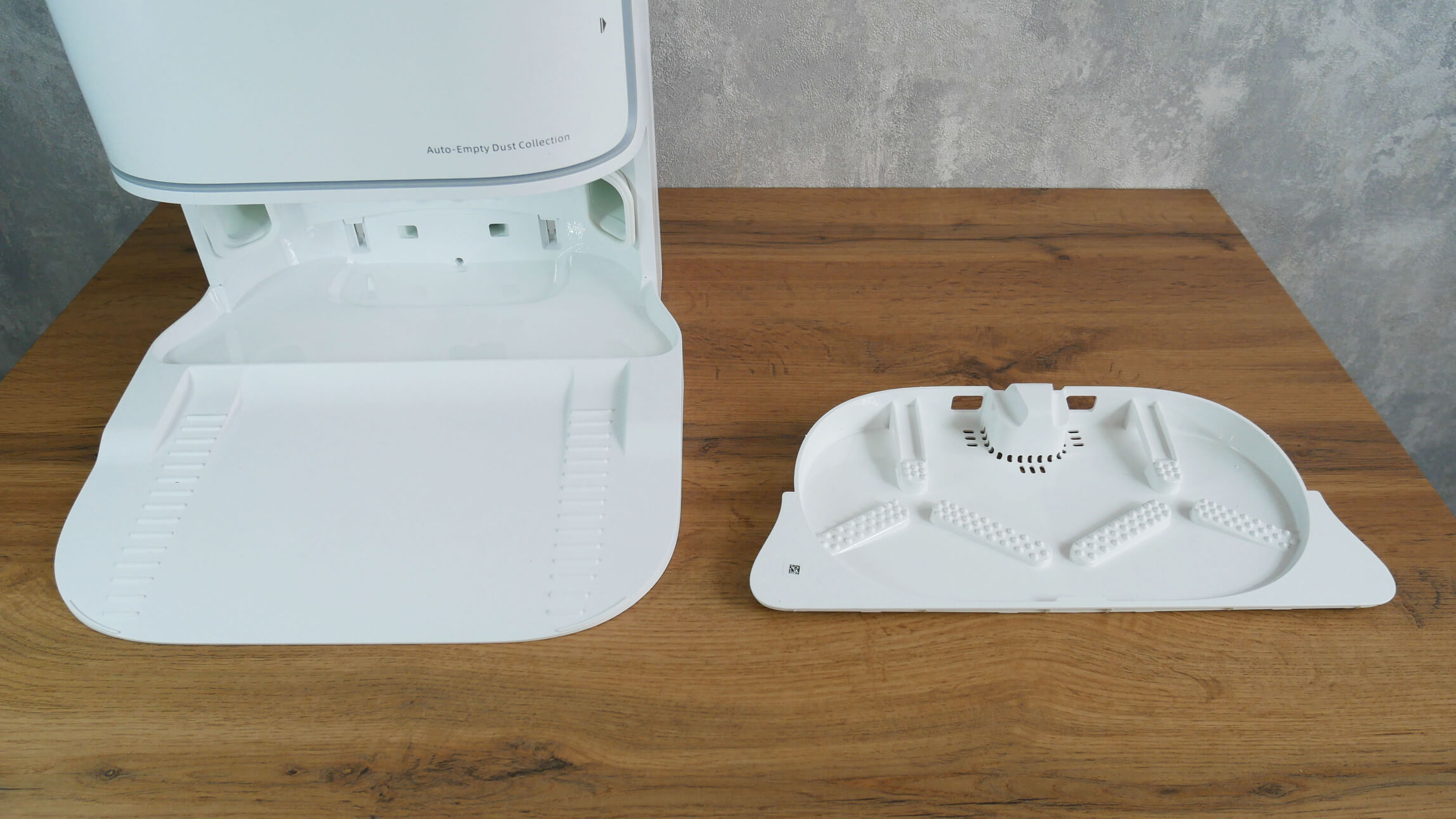 Palyginimui, štai kaip tas pats modulis atrodo „L10s Ultra“. Lietas dizainas yra praktiškesnis. Išėmėme dėklą, jį išplovome ir grąžinome į pagrindą. Matyt, jie apie tai pagalvojo ir iš dalies pakoregavo dizainą, kad stotį būtų lengviau prižiūrėti. Tai neabejotinai pliusas.