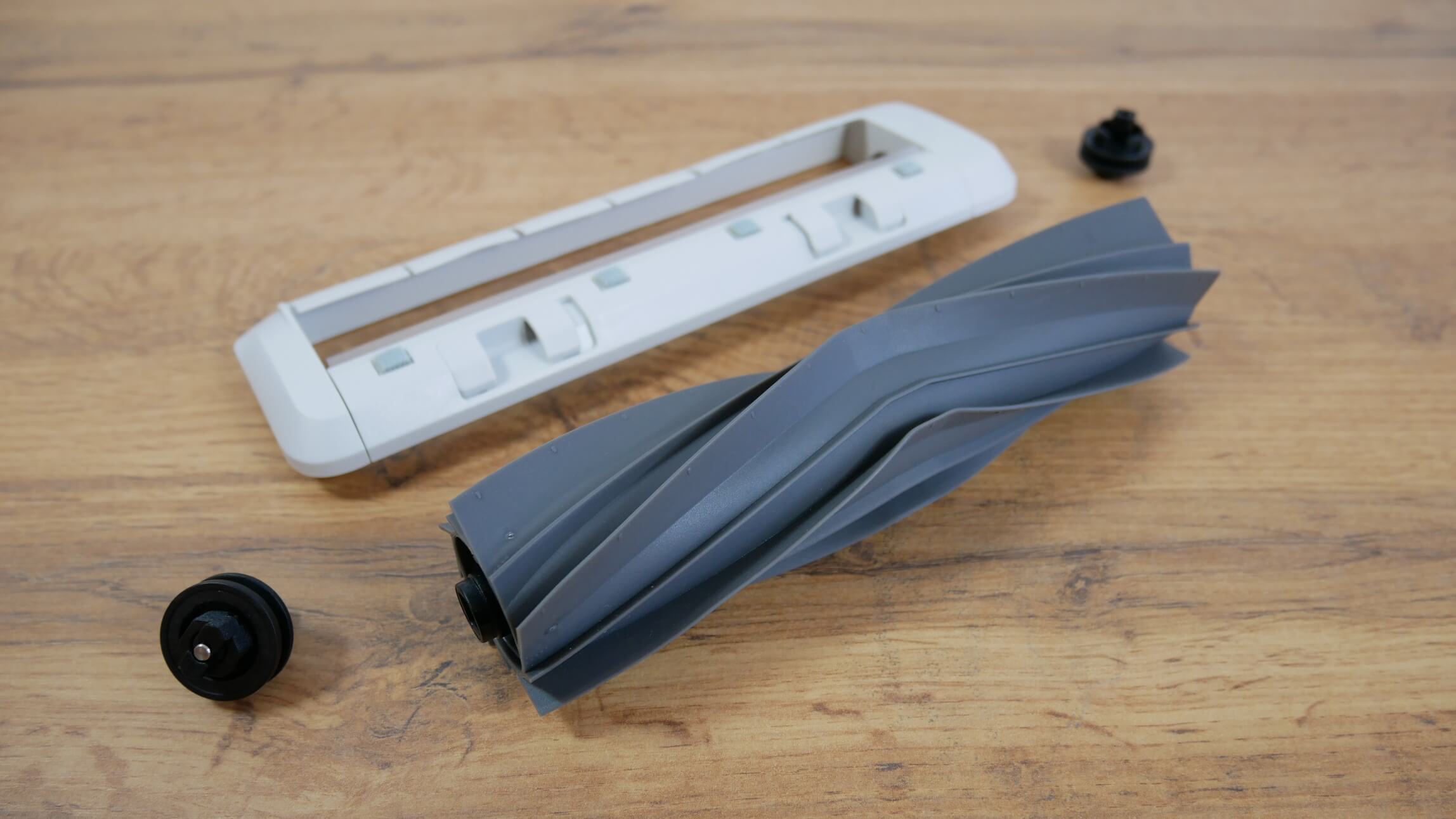 Šoninis šepetys yra tik vienas: trijų sijų, greito atleidimo blokas. Centrinis šepečio blokas yra „plaukiojantis“, o tai yra privalumas. Įdomu tai, kad pats turbo šepetys buvo atnaujintas. Dabar jis yra silikoninis, kaip ir jo pagrindinis konkurentas. „Roborock S7 MaxV“Patogiai išardomas iš abiejų pusių, kad būtų galima išvalyti susivėlusius plaukus ir kailį.