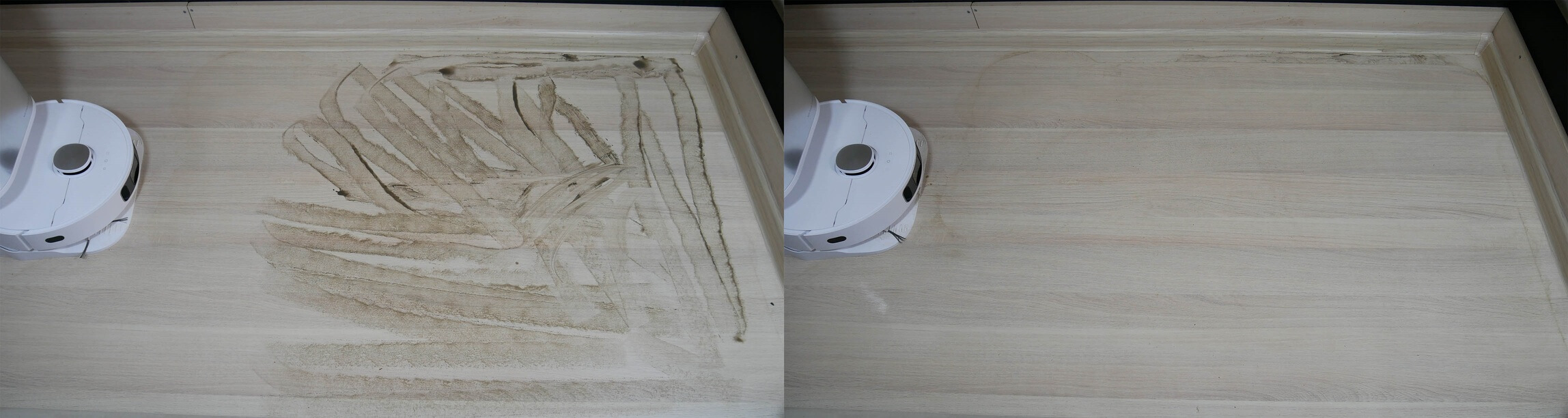 Kalbant apie navigaciją namuose, robotas dulkių siurblys valo kambarį po kambario, sekdamas perimetrą, o tada vingiuotu raštu. Kas 15 kvadratinių metrų, kaip nustatiau, jis grįžta į stotelę ir išskalauja šluostes, o tada tęsia valymą nuo ten, kur baigė. Nelieka jokių neišvalytų vietų; šis modelis turi puikią navigaciją!