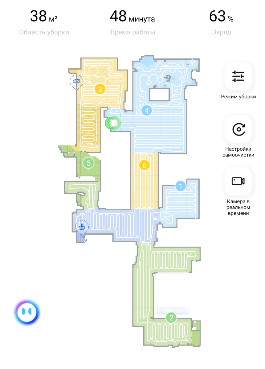 Kalbant apie navigaciją namuose, robotas dulkių siurblys valo kambarį po kambario, sekdamas perimetrą, o tada vingiuotu raštu. Kas 15 kvadratinių metrų, kaip nustatiau, jis grįžta į stotelę ir išskalauja šluostes, o tada tęsia valymą nuo ten, kur baigė. Nelieka jokių neišvalytų vietų; šis modelis turi puikią navigaciją!