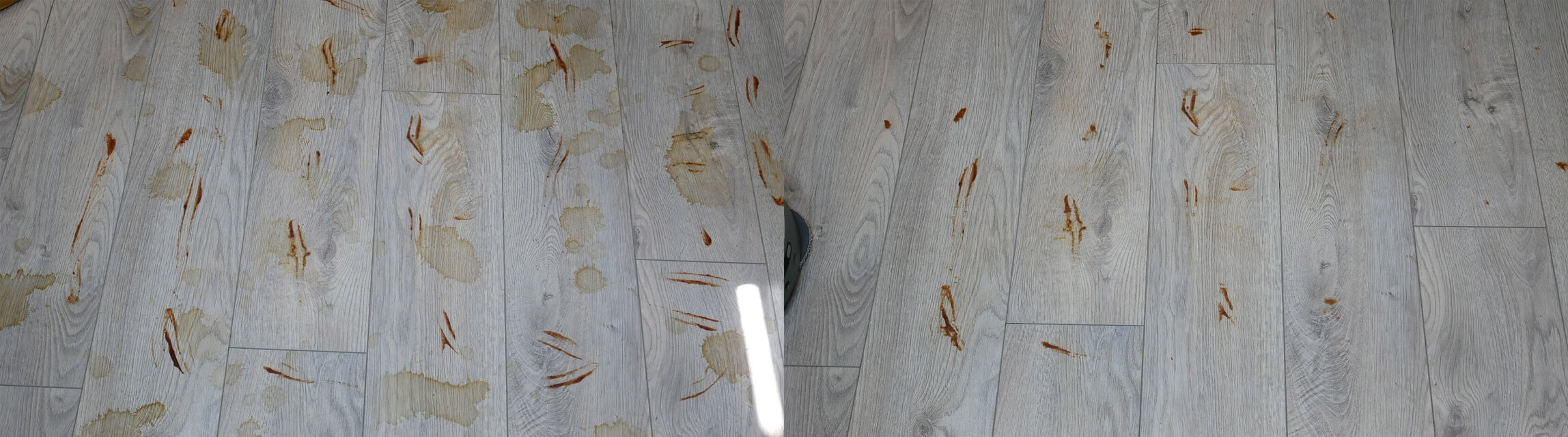 Tačiau „Dreame Bot X10 Pro“ nepašalino sunkiai įveikiamų dėmių. Jis pašalino kavos dėmes, tačiau sunkiai įveikiamos pridžiūvusios padažo dėmės pasirodė esančios neįveikiamos. Jo valymo efektyvumas buvo prastesnis nei panašių prietaisų, tokių kaip Hobot LEGEE-D8 ir „Roborock S8“. Tačiau namų aplinkai, manau, šlapio valymo funkcijos daugiau nei pakanka.
