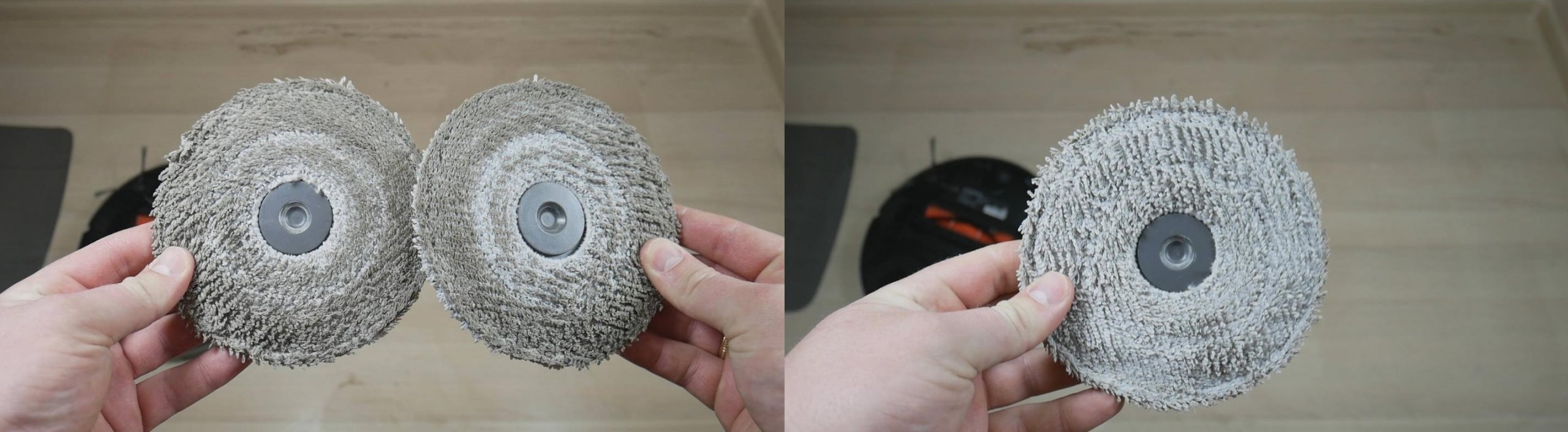 Robotas turi servetėlių laikiklius. Laikikliai turi magnetus, o servetėlės laikomos „Velcro“ lipdukais. Verta paminėti, kad „Dreame Bot X10 Pro“ gali automatiškai paimti servetėles, kai patenka į kilimines zonas. Tai yra privalumas.
