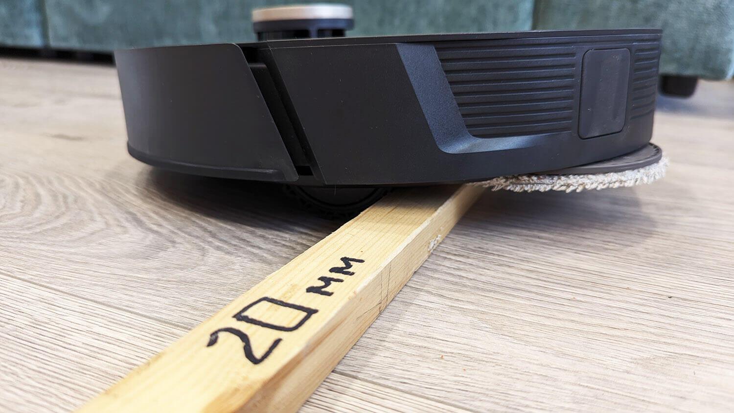 „Dreame Bot X20 Pro Plus“ lengvai įveikia 2 cm aukščio slenksčius, pakeldamas servetėles. Tai didelis privalumas!